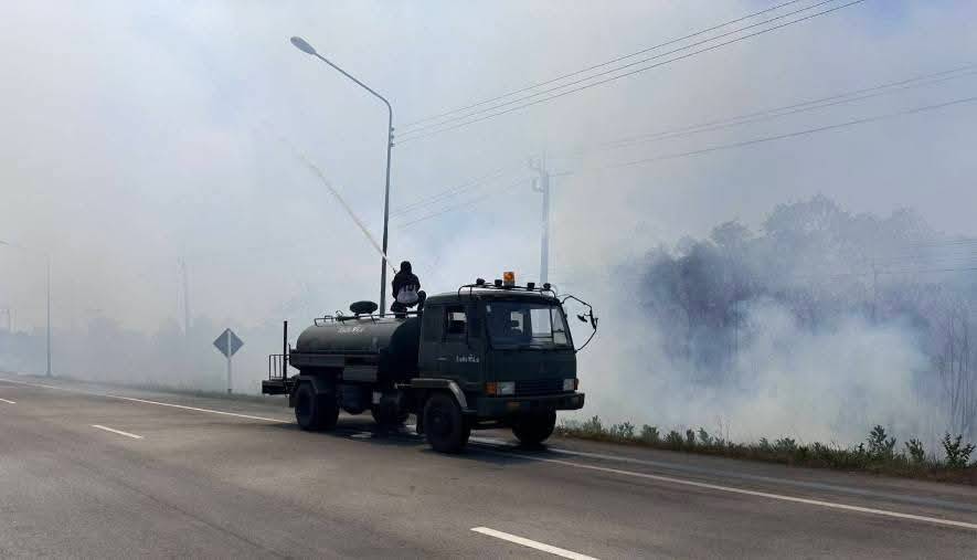 ผู้ว่าฯ สั่งด่วน 13 นายอำเภอ งัดไม้แข็ง “ห้ามประชาชนเผาทุกกรณี” โทษหนักนอนคุก 20 ปี ปรับ 2 ล้าน หลังไฟป่ายังไม่นิ่ง ขณะที่ผู้ต้องขังเชื่อมเหล็ก สะเก็ดไฟไปตกแนวป่าในเรือนจำ เสียหาย 2 ไร่นายบุญช่วย หอมยามเย็น ผวจ.นราธิวาส สั่งการด่วนไปยังนายอำเภอทั้ง 13 อำเภอ ใช้มาตรการขั้นเด็ดขาด แจ้งไปยังประชาชนถึงข้อห้ามเผาหญ้า เผาขยะ เผาป่า รวมทั้งทิ้งก้นบุหรี่บริเวณป่าในทุกกรณี หากเกิดไฟลุกลาม จะมีโทษตามกฎหมายขั้นเด็ดขาด จำคุกสูงสุด 20 ปี ปรับ 2 ล้านบาท ซึ่งพื้นที่ ต.กะลุวอ อ.เมืองนราธิวาส ที่สถานการณ์ไฟป่าลุกลามเป็นวงกว้างถึง 120 ไร่ อีกทั้งเปลวไฟยังปลิวไปตกที่หญ้าแห้งภายในกรมทหารราบที่ 151 ค่ายกัลยาณิวัฒนา หวิดลามถึงคลังน้ำมันของค่ายฯ โดย พันเอก ทรงเดช สุกนุ้ย ผู้บังคับการกรม ร.151 สั่งระดมกำลังเร่งดับไฟจนสถานการณ์คลี่คลายส่วนจุดเกิดไฟป่าที่บ้านกาโมแร ต.กะลุวอ อ.เมืองฯ และลุกลามไปอีก 2 หมู่บ้านใกล้เคียง จากสภาพพื้นที่เป็นป่าพรุและสวนปาล์ม คาบเกี่ยวในความรับผิดชอบของเขตรักษาพันธุ์สัตว์ป่าเฉลิมพระเกียรติสมเด็จพระเทพฯ ที่เต็มไปด้วยหญ้าแห้งในช่วงหน้าร้อนปีนี้ ชุดดับไฟป่าต้องระดมกำลังเพิ่มความชื้นใต้ผิวดินตามจุดที่ยังมีควันไฟพุ่งนายรุสดี ปูรียา นายอำเภอเมืองนราธิวาส / ผอ.ศปก.อ.เมืองนราธิวาส เผย ถึงแม้เจ้าหน้าที่จะระดมกำลังดับไฟที่ลุกลามอย่างรุนแรงตลอด 5 วัน ทำให้สถานการณ์คลี่คลายลงมาก แต่ยังคงต้องเฝ้าระวัง โดยจัดชุดเฝ้าหมู่บ้านละ 30 คน คอยสังเกตการณ์จุดเสี่ยงที่เชื้อไฟอาจจะปะทุขึ้นมาอีกและเมื่อเวลา 11.00 น.วานนี้ (22 เม.ย.69) ได้เกิดไฟไหม้ป่าหญ้าใกล้ที่จอดรถ ภายในเรือนจำ จ.นราธิวาส ต.ลำภู อ.เมืองนราธิวาส นายรุสดี ปูรียา นายอำเภอเมืองฯ มอบหมายให้ปลัดอำเภอ ลงพื้นที่ติดตามสถานการณ์ ก่อนรายงานว่า สาเหตุเกิดจากผู้ต้องขังกำลังเชื่อมเหล็กภายในโรงฝึกอาชีพ สะเก็ดไฟได้ไปตกจนเกิดไฟไหม้ลุกลามไปยังพื้นที่ป่า เจ้าหน้าที่จึงระดมรถดับเพลิงจาก อบต.และเทศบาล เข้าสกัดไว้ได้ โดยมีพื้นที่เสียหายกว่า 2 ไร่ สำหรับ อ.สุไหงปาดี และ อ.ตากใบ จากการบูรณาการหน่วยงานที่เกี่ยวข้อง ภาพรวมพบว่าคลี่คลายในช่วงค่ำ จะปะทุขึ้นมาบางจุดในช่วงเที่ยงที่อากาศร้อนอบอ้าว อีกทั้งกระแสลม ที่ยังต้องเฝ้าระวังตลอด 24 ชั่วโมง นราธิวาส – ภาพข่าวสัญฐิติ ขอจิตต์เมตต์