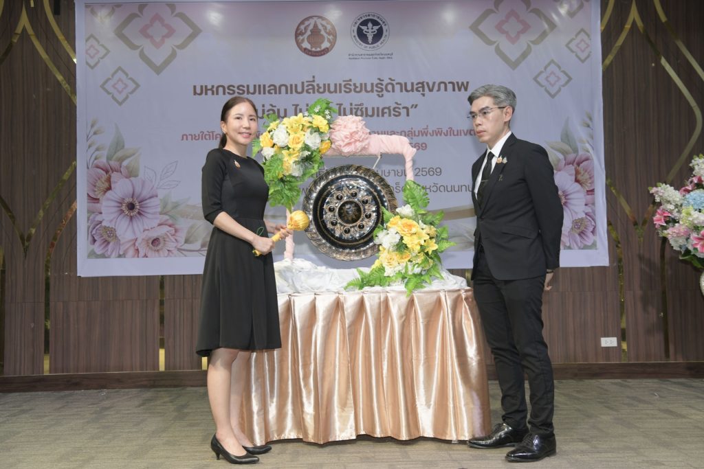 นนทบุรี-เปิดมหกรรมสุขภาพ “ไม่ล้ม ไม่ลืม ไม่ซึมเศร้า” วันนี้ (23 เม.ย. 69) เวลา 13.30 น. ณ โรงแรมแกรนด์ราชพฤกษ์ จังหวัดนนทบุรี นางสาวปาณิสรา กาญจนะจิตรา รองผู้ว่าราชการจังหวัดนนทบุรี เป็นประธานในพิธีเปิดงานมหกรรมแลกเปลี่ยนเรียนรู้ด้านสุขภาพ “ไม่ล้ม ไม่ลืม ไม่ซึมเศร้า” ภายใต้โครงการพัฒนาระบบการดูแลผู้สูงอายุและกลุ่มพึ่งพิงในเขตเมืองและชุมชนจังหวัดนนทบุรี ประจำปี 2569 โดยมีนายแพทย์ปริพนท์ จุลเจิม นายแพทย์สาธารณสุขจังหวัดนนทบุรี กล่าวรายงานวัตถุประสงค์การจัดโครงการฯ กิจกรรมภายในงานครั้งนี้มีผู้เข้าร่วมกว่า 450 คน ประกอบด้วยสมาชิกชมรมผู้สูงอายุจากทั้ง 6 อำเภอ ซึ่งได้ร่วมกันแสดงพลังความเข้มแข็งผ่านอัตลักษณ์ผู้สูงอายุจังหวัดนนทบุรี อาทิ การร่วมกัน “รำวงนนทบุรี” เพื่อการออกกำลังกาย และการรณรงค์ “กินโปรตีนให้เพียงพอ” เพื่อเสริมสร้างกล้ามเนื้อป้องกันภาวะพลัดตกหกล้ม นอกจากนี้ยังมีการสาธิตและนิทรรศการจากผู้เชี่ยวชาญ ทั้งนักกายภาพบำบัดและนักโภชนาการจากโรงพยาบาลบางบัวทอง โรงพยาบาลบางกรวย และสำนักงานสาธารณสุขจังหวัดนนทบุรี เพื่อมอบความรู้ในการดูแลสุขภาพอย่างครบวงจร บรรยากาศภายในงานเต็มไปด้วยความสนุกสนานและรอยยิ้ม ซึ่งเป็นส่วนสำคัญในการสร้างสุขภาพจิตที่ดีและป้องกันภาวะซึมเศร้าในผู้สูงอายุ สอดคล้องกับเป้าหมายของจังหวัดที่ต้องการให้ผู้สูงวัยชาวนนทบุรีมีคุณภาพชีวิตที่ดี แข็งแรง และมีความสุขในสังคมเมืองอย่างมีคุณภาพ จังหวัดนนทบุรีได้ก้าวเข้าสู่สังคมผู้สูงอายุอย่างสมบูรณ์ โดยมีสัดส่วนผู้สูงอายุเพิ่มขึ้นอย่างต่อเนื่องถึงร้อยละ 24.23 ในปี 2568 ซึ่งจังหวัดนนทบุรีให้ความสำคัญอย่างยิ่งกับการส่งเสริมให้ผู้สูงอายุสามารถดูแลตนเองได้ ที่มีสัดส่วนถึงร้อยละ 96.77 โดยเน้นการพัฒนาคุณภาพชีวิตใน 3 ด้านหลัก ได้แก่ โภชนาการ การเคลื่อนไหว และสุขภาพช่องปาก เพื่อให้มีสุขภาพที่แข็งแรงอย่างยั่งยืนประยงค์ วิลัย ภาพข่าว