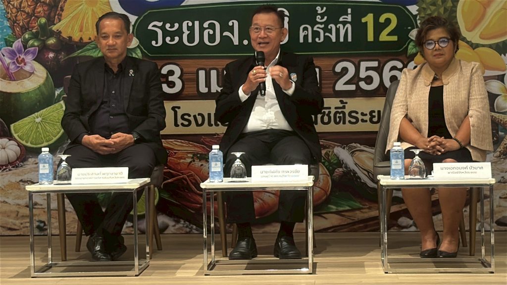 เมื่อเวลา 17.00 น.วันที่ 23 เม.ย.69 ที่ห้องประชุมโรงแรมโกลเด้นซิตี้ระยอง อ.เมือง จ.ระยอง นายกัฬชัย เทพวรชัย รองผู้ว่าราชการจังหวัดระยอง นางเอกอนงค์ บัวมาศ พาณิชย์จังหวัดระยอง นายประสานต์ พฤกษาชาติ รองนายก อบจ.ระยอง น.ส.ธนิชยา ชินศิรประภา รองประธานหอการค้าจังหวัดระยอง ร่วมแถลงข่าวการจัดงานเทศกาลอาหารอร่อย…ระยองฮิ ครั้งที่ 12 ซึ่งจัดโดยจังหวัดระยอง จังหวัดระยอง พาณิชย์จังหวัดระยอง อบจ.ระยอง หอการค้าจังหวัดระยอง และภาคีเครือข่ายที่เกี่ยวข้อง ระหว่างวันที่ 1-5 พฤษภาคม 2569 นี้ ที่สนามกีฬากลางจังหวัดระยอง ภายในงานจะมีบูธจำหน่ายสินค้า อาหารขึ้นชื่อหลากหลายเมนู พร้อม Food truck ของดีจังหวัดระยองกว่า 130 ร้านค้า กิจกรรมสาธิตการทำอาหารรังสรรค์เมนูใหม่วัตถุดิบพื้นถิ่นระยอง โดยเชฟชื่อดัง “บุ๊ค บุญสมิทธิ์ พุกกะณะสุต” กิจกรรมแจกเงินรางวัลทั้งหมด 5 กิจกรรม วันละ 20,000 บาท รวม 100,000 บาท มีแข่งกินเร็ว, แข่งขันซื้ออาหาร, เล่นเกมส์แจกคูปองแทนเงินสด, สินค้านาทีทองที่ลดราคามากกว่า 50% และกิจกรรมแจกเครื่องใช้ไฟฟ้าทุกวัน และยังมีบูธจำหน่ายผลไม้ขึ้นชื่อของจังหวัดระยอง ทุเรียน GI, เงาะ, มังคุด เป็นต้น ในราคาโปรโมชั่นคืนกำไรให้ประชาชนด้วย