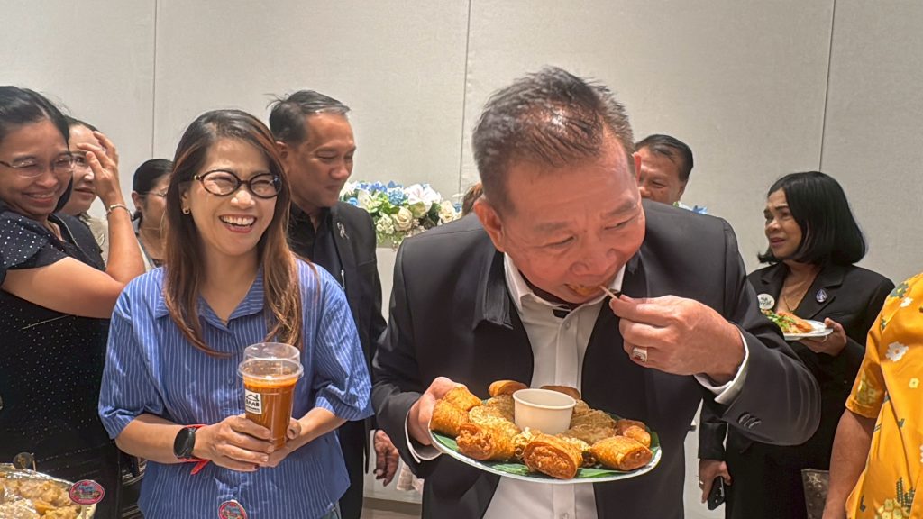นายกัฬชัย เทพวรชัย รอง ผวจ.ระยอง กล่าวว่าเทศกาลลอาหารอร่อย ระยอง …ฮิ ครั้งที่12 ตนการันตีได้ว่าร้าน140ร้านอาหารเยี่ยมของดีระยอง ถ้าไม่ดีต่อว่าพาณิชย์จังหวัดระยองได้เลย