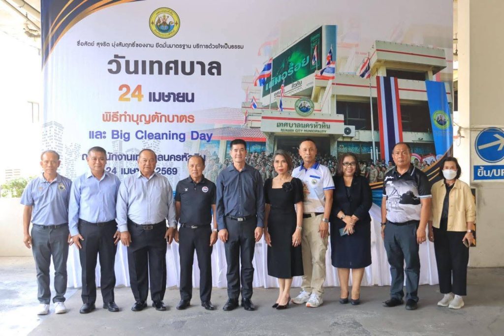 เทศบาลนครหัวหินจัด “วันเทศบาล 2569” รวมพลังขับเคลื่อนงานโปร่งใส มุ่งบำบัดทุกข์ บำรุงสุขประชาชนวันที่ 24 เมษายน 2569 ณ เทศบาลนครหัวหิน อำเภอหัวหิน จังหวัดประจวบคีรีขันธ์ นายนพพร วุฒิกุล นายกเทศมนตรีนครหัวหิน เป็นประธานในพิธีทำบุญตักบาตรข้าวสารอาหารแห้ง เนื่องใน “วันเทศบาล” ประจำปี 2569 ณ อาคารจอดรถ ชั้น 1Bโดยมี นางสาวไพลิน กองพันธ์ รองนายกเทศมนตรีนครหัวหิน, นายศิรพันธ์ กมลปราโมทย์ และ พ.ต.อ.เสมอ อยูาสำราญ ที่ปรึกษานายกเทศมนตรี, นายจีรวัฒน์ พราหมณี ปลัดเทศบาลนครหัวหิน, รวมถึง นายลิขิต หนูนิล และ นางหนึ่งฤทัย สุขจันทร์ รองปลัดเทศบาลนครหัวหิน พร้อมด้วยคณะผู้บริหาร สมาชิกสภา และเจ้าหน้าที่ เข้าร่วมอย่างพร้อมเพรียงภายในพิธีมีการอ่านสารจากนายกรัฐมนตรี พร้อมเน้นย้ำแนวทางการดำเนินงานของเทศบาลในปี 2569 ผ่าน 3 ประเด็นสำคัญ ได้แก่มุ่งบำบัดทุกข์ บำรุงสุขประชาชน ให้บริการอย่างทั่วถึง เป็นธรรม และยึดประชาชนเป็นศูนย์กลางยกระดับความโปร่งใส (ITA) ตั้งเป้าพัฒนาคะแนนให้สูงกว่าปี 2568 ที่ทำได้ 96.05 คะแนนรวมพลังจิตอาสา จัดกิจกรรม Big Cleaning Day ทำความสะอาดพื้นที่โดยรอบสำนักงานทั้งนี้ เทศบาลนครหัวหินยืนยันความมุ่งมั่นในการเป็นองค์กรปกครองส่วนท้องถิ่นที่โปร่งใส มีประสิทธิภาพ และเป็น “ฟันเฟืองสำคัญ” ในการยกระดับคุณภาพชีวิตของประชาชน พร้อมสร้างความเชื่อมั่นและรอยยิ้มให้กับชาวหัวหินอย่างต่อเนื่อง