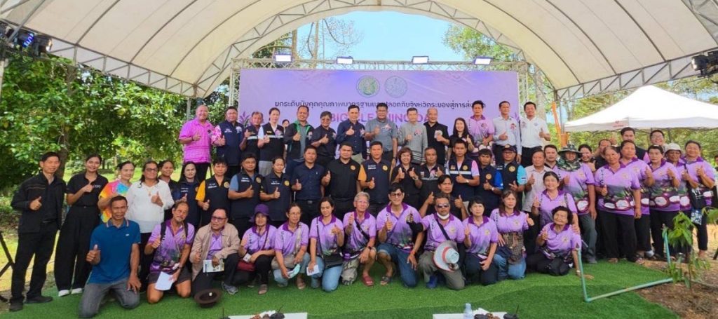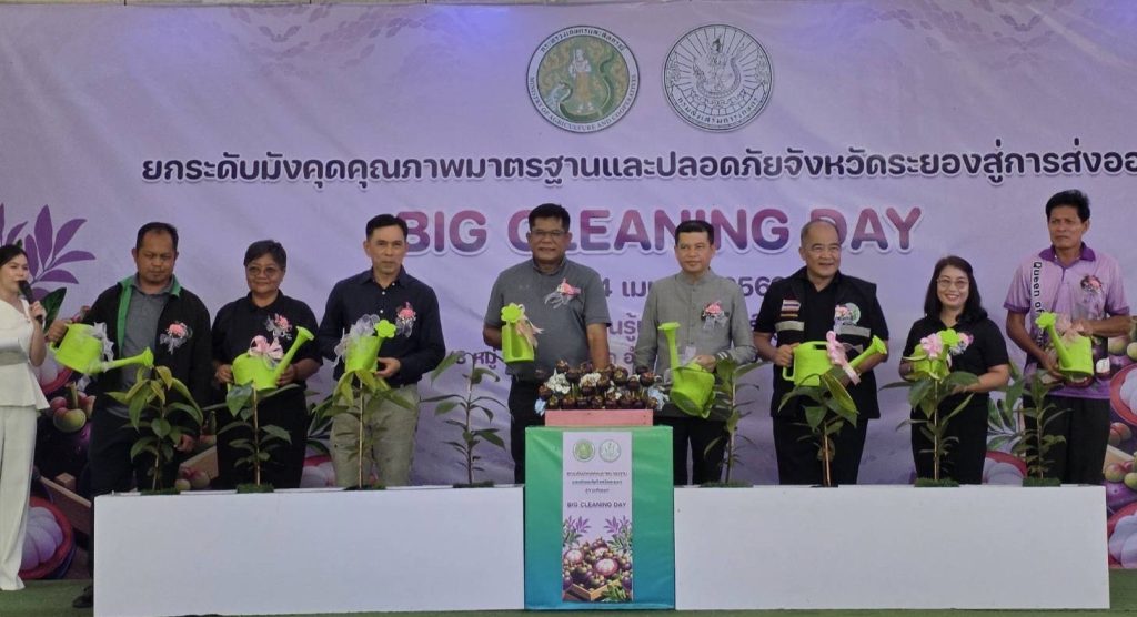 เกษตรจังหวัดระยอง เปิดงานยกระดับมังคุดคุณภาพมาตรฐานและความปลอดภัยสู่การส่งออก “Big Cleaning Day” สร้างการรับรู้ และส่งเสริมให้เกษตรกรชาวสวนมังคุด ผลิตมังคุดคุณภาพ เน้น “ผิวสวย เนื้อขาว รสดี ไม่มีสารตกค้าง” เพื่อให้ตรงตามความต้องการตลาดส่งออกตามหลักมาตรฐาน GAP เมื่อเวลา 10.00 น. วันที่ 24 เม.ย.69 ที่แปลงเกษตรเรียนรู้ของนายโกมินทร์ ชูวงษ์ เกษตรกรชาวสวนมังคุด ต.กะเฉด อ.เมืองระยอง จ.ระยอง ผู้สื่อข่าวรายงานว่า นายรพีทัศน์ อุ่นจิตตพันธ์ รองอธิบดีกรมส่งเสริมการเกษตร เป็นประธานเปิดงานยกระดับมังคุดคุณภาพมาตรฐานและความปลอดภัยสู่การส่งออก “Big Cleaning Day” ซึ่งจัดขึ้นโดยสำนักงานเกษตรจังหวัดระยอง โดยมีนายกิติพงศ์ อุระวัตร นายอำเภอเมืองระยอง กล่าวต้อนรับ นางสาวสมหมาย พลมณี เกษตรจังหวัดระยอง กล่าวรายงาน โดยมีนายปัญญา ประดิษฐสารผอ.สำนักงานส่งเสริมและพัฒนาการเกษตรที่ 3 จ.ระยอง นายธนโชค พงษ์ชวลิต เกษตรและสหกรณ์จังหวัดระยอง นายสืบพงษ์ พูนวรรณกุล หัวหน้ากลุ่มกำกับและพัฒนาเศรษฐกิจการค้า นางญาณิศา แสงพงษ์พิทยา หัวหน้ากลุ่มทะเบียนธุรกิจและอำนวยความสะดวกทางการค้า สำนักงานพาณิชย์จังหวัดระยอง เกษตรกรผู้ปลูกมังคุดในพื้นที่ ผู้นำ อปท. หน่วยงานราชการที่เกี่ยวข้อง เข้าร่วมงาน จำนวน 200 ราย การตัดงานในครั้งนี้มีวัตถุประสงค์ เพื่อประชาสัมพันธ์การยกระดับมาตรฐานการผลิตมังคุดที่ปลอดภัยได้มาตรฐานของจังหวัดระยอง สร้างการรับรู้การจัดการด้านสุขอนามัยพืชตามหลัก GAP เพื่อสร้างความเชื่อมั่นให้กับผู้บริโภค หรือประเทศคู่ค้าต่อไป ภายในงานมีเวทีเสวนา ในหัวข้อ เทคนิคการผลิตมังคุดคุณภาพให้ตรงความต้องการของตลาดส่งออก และฐานการเรียนรู้ 6 ฐาน ประกอบด้วย ฐานการเรียนรู้การผลิตมังคุดคุณภาพ, ฐานการเรียนรู้ สวนสะอาด มาตรฐาน GAP, ฐานการเรียนรู้ ดินดี ปุ๋ยดีผลผลิตดี, ฐานการเรียนรู้ รักษ์น้ำ, ฐานการเรียนรู้ อารักขาพืชปลอดภัย สบายใจ ทั้งพืช คน และสิ่งแวดล้อม และฐานการเรียนรู้ มหัศจรรย์ราชินีผลไม้จากเนื้อผลสู่ผลิตภัณฑ์ สร้างสรรค์ น.ส.สมหมาย พลมณี เกษตรจังหวัดระยอง เผยว่า จังหวัดระยอง เป็นแหล่งผลิตไม้ผลเศรษฐกิจที่สำคัญของประเทศ หลายชนิด ได้แก่ ทุเรียน มังคุด เงาะ และลองกอง โดยมังคุดในฤดูกาลผลิต ปี ๒๕๖๙ ผลผลิตจะออกสู่ตลาดในช่วงเดือนเมษายน – กรกฎาคม คาดการณ์ปริมาณผลผลิตมังคุดทั้งหมด จำนวน 11,292 ตัน ลดลงจากปี 2568 เนื่องจากสภาวะภูมิอากาศไม่เหมาะสม ทำให้ปีนี้ออกดอกช้าและน้อยกว่าปีที่ผ่านมา ด้วยสถานการณ์ในปัจจุบันตลาดต่างประเทศ มีการยกระดับความเข้มงวดด้านสุขอน