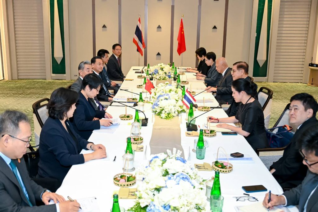 สีหศักดิ์หารือไม่เป็นทางการหวังอี้จีนย้ำชัดไม่แทรกแซงไทยกัมพูชาพร้อมหนุนแผนพัฒนาร่วมกันสู่อนาคตเรื่องนวัตกรรมเทคโนโลยี่ดิจิตอลสู่เศรษฐกิจสีเป็นหุ้นส่วนมุ่งปราบสแกมเมอร์