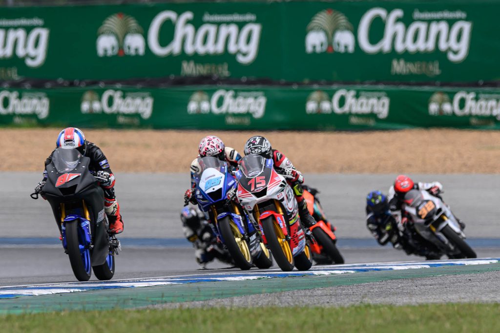 ขยับมาดูสถานการณ์ในรุ่น ซูเปอร์สปอร์ต 600 ซีซี (SS1Pro) ซึ่งเป็นอีกหนึ่งไฮไลต์ของสุดสัปดาห์นี้ โดยผู้นำวันแรกได้แก่ ต่อศักดิ์ นวลสาย จาก ยามาฮ่า ทีเอ็นพี พีทีที ลูบริแคนท์ส ด้วยเวลาต่อรอบ 1 นาที 51.627 วินาที เหนือดาวรุ่งอย่าง “ไฮเปค” กฤษฎา ธนโชติ จาก อีสต์ เอ็นเจที พีทีที ลูบริแคนท์ส เรซซิ่ง ทีม อันดับ 2 เพียง 0.671 วินาที ตามด้วย “จิมมี่” บูรพา วันมูล จาก อาซูจิโระ อู่ช่างต่อลพบุรี ลิควิโมลี ตามหลัง 1.481 วินาที