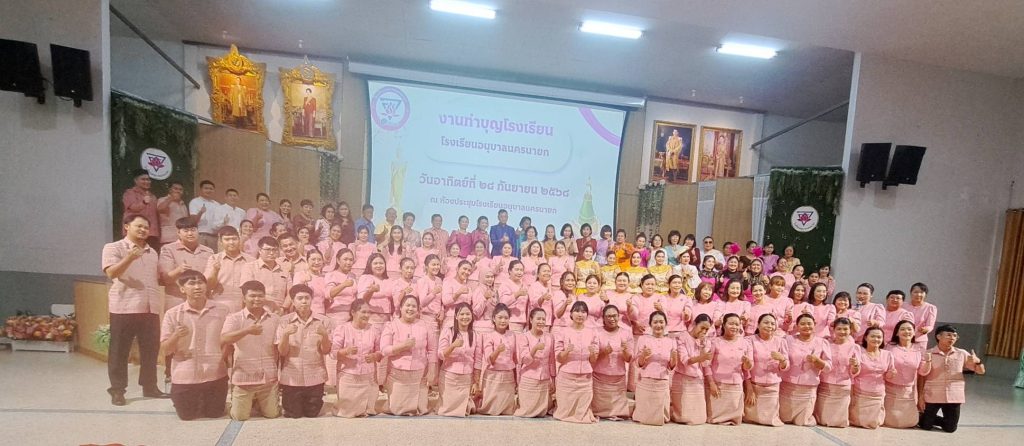 โรงเรียนอนุบาลนครนายก จัดกิจกรรมทำบุญโรงเรียน และแสดงความยินดีกับผู้บริหารสถานศึกษาและบุคลากรทางการศึกษา ที่เกษียณอายุราชการ