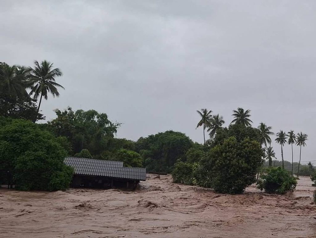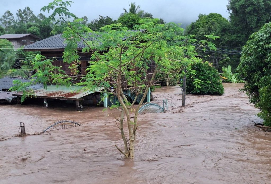 ไม่ห่างกันมากนัก พายุบัวลอย ทำให้ฝนตกหนัก ส่งผลน้ำป่าไหลหลากท่วม หมู่ 3 บ้านปลายนา ต.บ้านตึก อ.ศรีสัชนาลัย จ.สุโขทัย มีน้ำไหลหลากลงเข้ามาในหมู่บ้านเรือนประชาชนที่มีอยู่พื้นที่ต่ำ