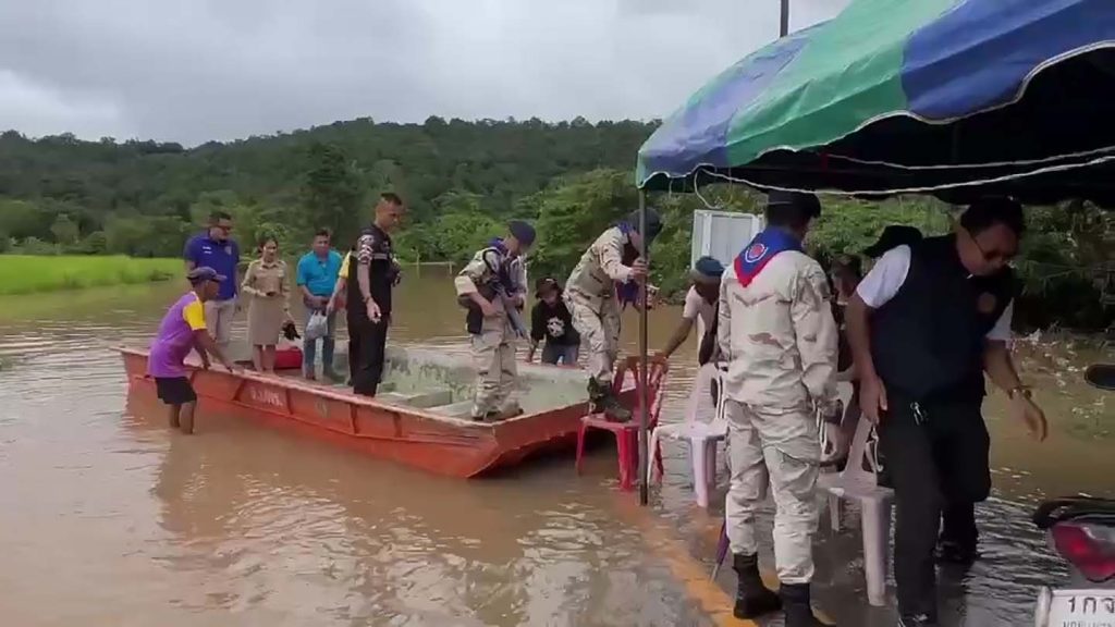 30 09 68 อิทธิพลพายุ “บัวลอย” ส่งผลให้ฝนตกหนักต่อเนื่อง 2 วันที่ที่ผ่านมา ในพื้นที่จังหวัดมุกดาหาร ส่งผลให้น้ำระบายไม่ทันน้ำจากลำห้วยบางทรายเอ่อล้นเข้าท่วมเส้นทางสัญจรใน 3 หมู่บ้าน ได้แก่ บ้านโพนสว่าง บ้านนาหลัก และบ้านติ้ว ตำบลพังแดง อำเภอดงหลวง โดยถนนสายหลักที่เชื่อมหมู่บ้านระยะทางประมาณ 15 กิโลเมตร ขาดถึง 3 จุด ทำให้ประชาชนสัญจรลำบาก