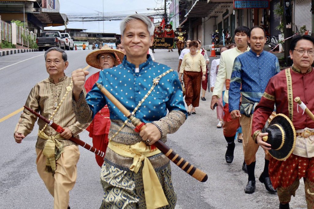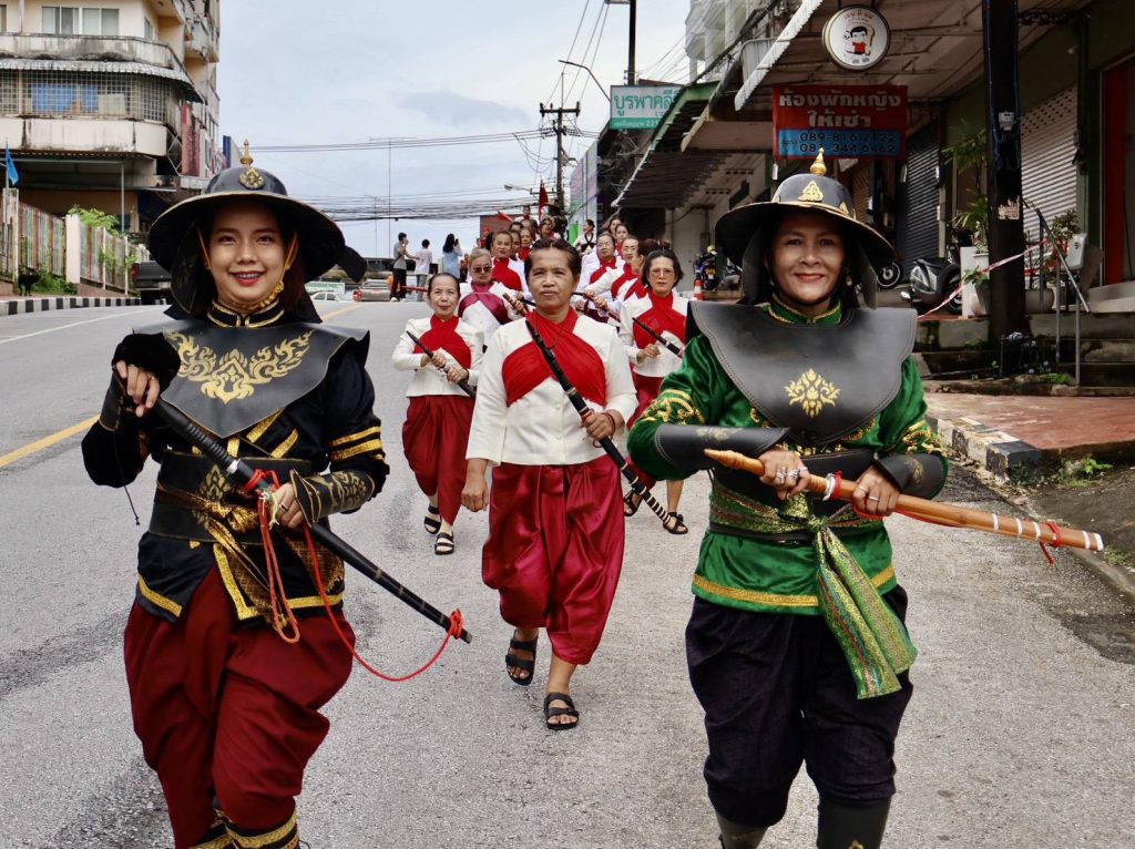 แต่งกายย้อนยุคเป็นนักรบสมัยสมเด็จพระเจ้าตากสินมหาราชร่วมขบวนเทิดพระเกียรติ