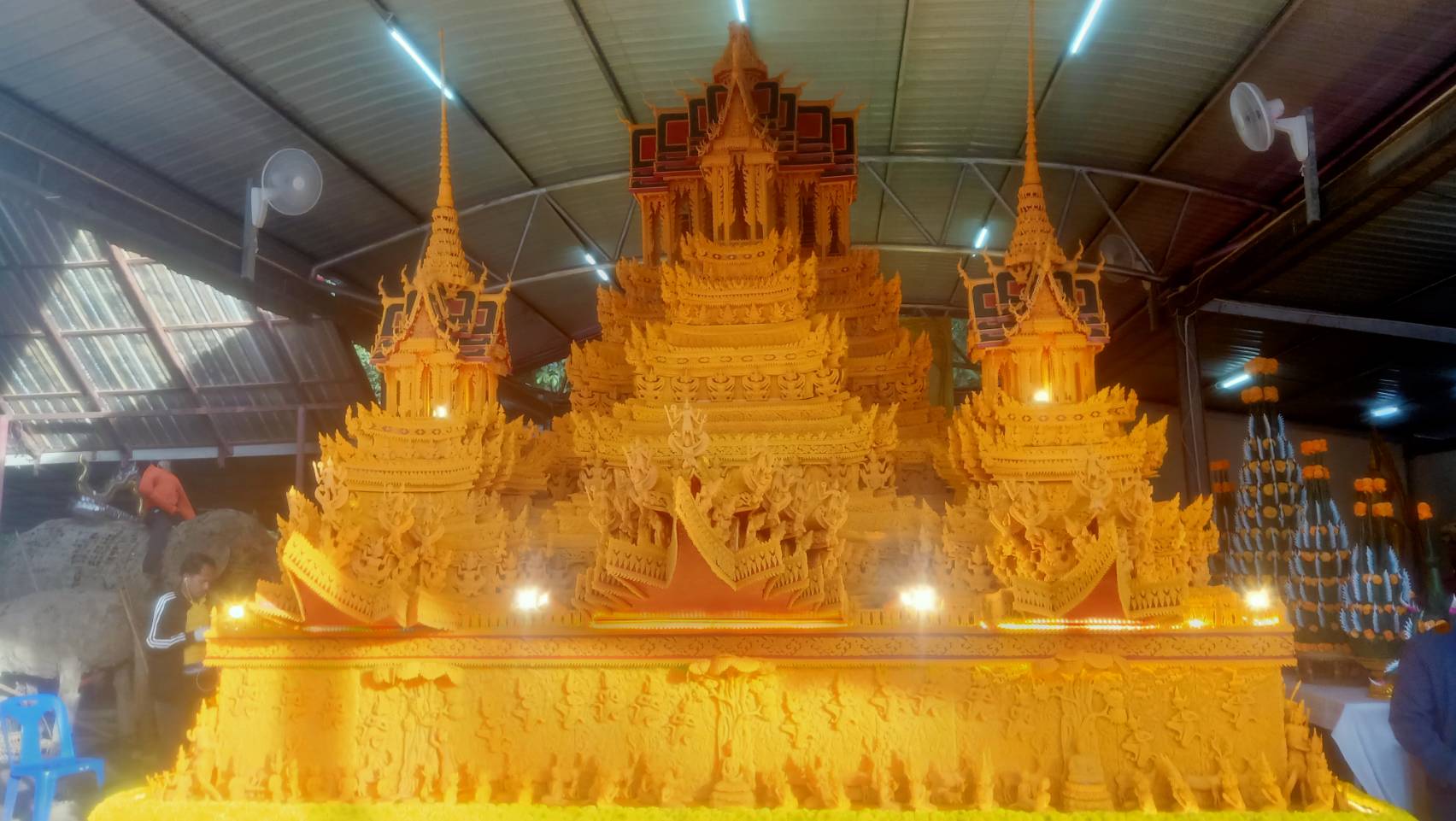 สกลนคร วัดสะพานศรีอัญเชิญปราสาทผึ้งเข้าไปตั้งโชว์ความงดงามตระการตา