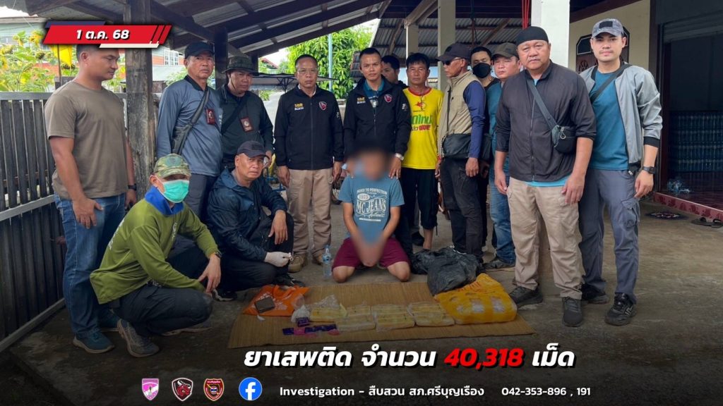 เมื่อวันที่ 1 ดุลาคม 2568 เวลาประมาณ 15.00 น.ณ บริเวณหน้า สภ.ศรีบุญเรือง จังหวัดหนองบัวลำภู พ.ต.อ.กัมปนาท เศรษฐ์ฤทธิกุล ผกก สภ.ศรีบุญเรือง พร้อม พ.ต.ท.สิทธิศักดิ์ อัครอาต รอง ผกก.สอบสวน พ.ต.ท.นรินทร์ โคตรคำจันทร์ รอง ผกก.ป.สภ.ศรีบุญเรือง พ.ต.ท. สุทัศน์ ไพบูลย์ รอง ผกก.สส.สภ.ศรีบุญเรือง และเจ้าหน้าที่ตำรวจชุดสืบสวนจับกุม นำนายทอง(นามสมมุติ)อายุ 29 ปี อยู่บ้านเลขที่ 66 บ้านหนองผือ หมู่ 13 ตำบลหนองแก อำเภอศรีบุญเรือง จังหวัดหนองบัวลำภู ซึ่งเป็นผู้ต้องหาที่ชอบเก็บตัวอยู่แต่ในห้อง ไม่ชอบสุงสิงกะใคร หรือเรียกอีกอย่าง หรือ คนชอบสันโดษ หรือ คนเก็บตัว หรือ สายเก็บตัว หรือหนอนห้อง มาแถลงข่าวต่อสื่อมวลชนถึงผลการจับกุมผู้ต้องหารายใหญ่ของอำเภอศรีบุญเรือง มูลค่ายาบ้าและทรัพย์สิน ร่วม 3 ล้านกว่าบาท