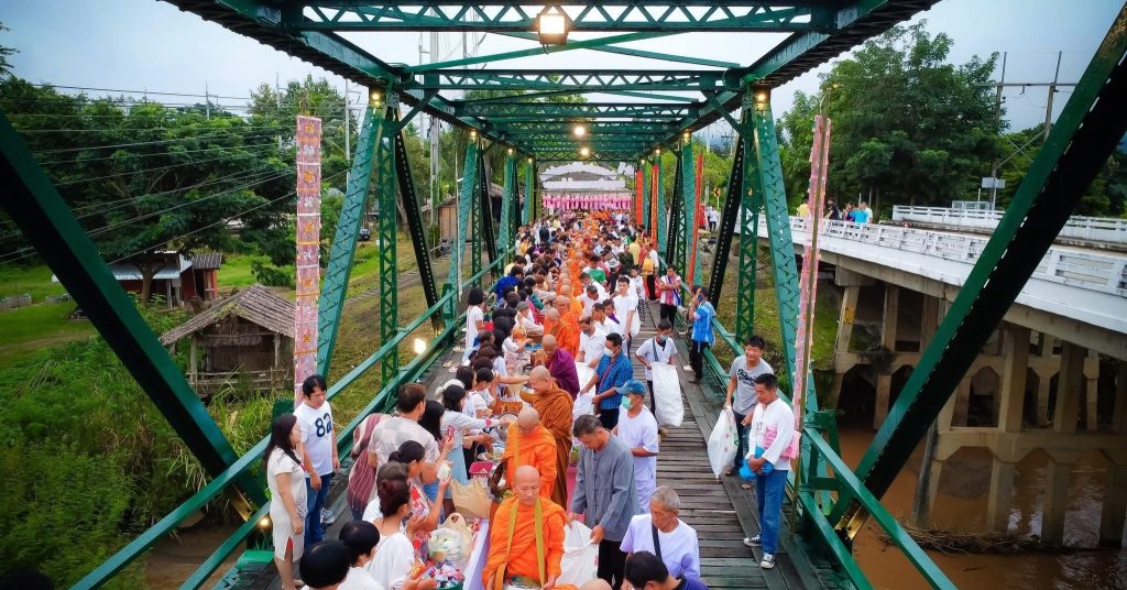 ขอเชิญร่วมทำบุญตักบาตรเทโวโรหณะ พระสงฆ์ 79 รูป ย้อนรอยประวัติศาสตร์ 2458 สะพานปะวัติศาสตร์ปาย