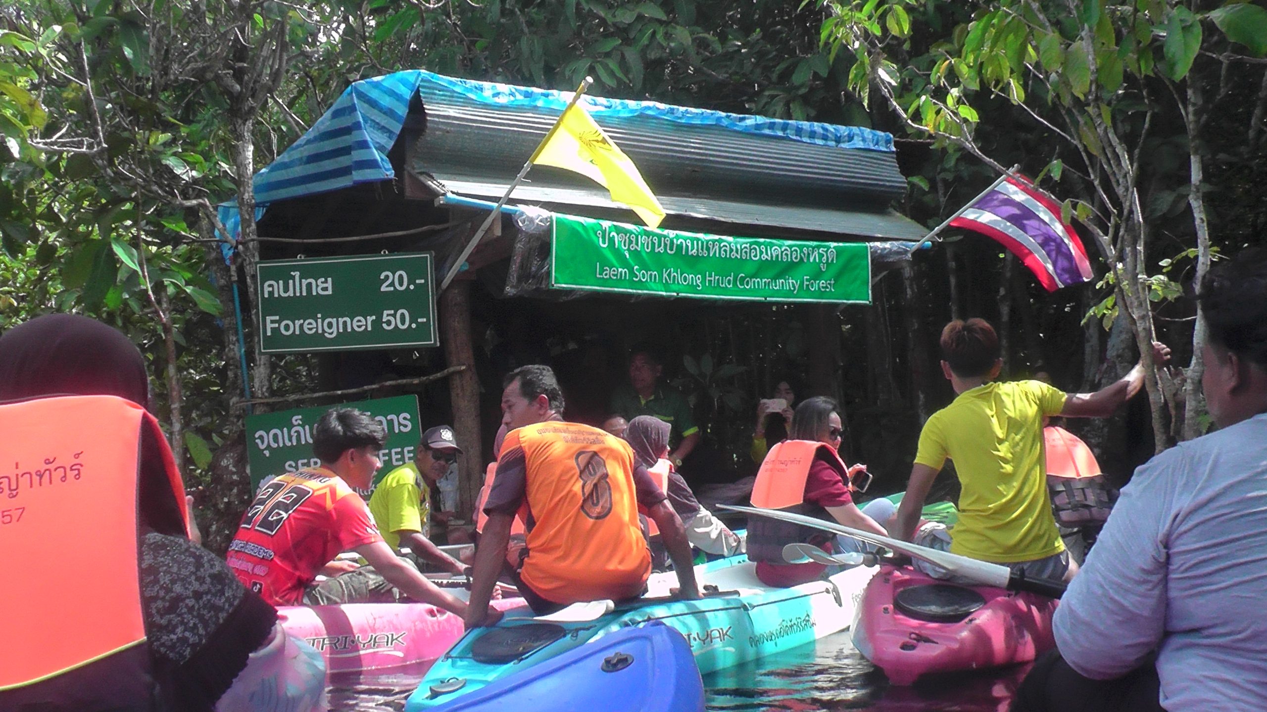 และที่สำคัญที่สร้างปัญหาใหญ่คือการเรียกเก็บค่าบริการแก่นักท่องเทียวทั้งชาวไทยและชาวต่างชาติ คนไทย 20 บาท ต่างชาติ 50 บาท ที่พายเรือคายัคเข้าไปในคลองหรูดคลองน้ำใส โดยไม่ชอบด้วยกฎหมายผิดระเบียบการจัดตั้งป่าชุมชน และไม่ทราบว่ารายได้นำไปใช้จ่ายอะไรบ้าง ถึงแม้ว่าจะมีการทำหนังสือสอบถามไปแต่เรื่องกลับเงียบ โดยมีนายสุขกาย จันทร์อ่อน นายกองค์การบริหารส่วนตำบลหนองทะเล ตัวแทนป่าชุมชนบ้านแหลมสอม ตัวแทนกลุ่มวิสาหกิจชุมชนท่องเที่ยวเรือคายัคบ้านหนองทะเล ผู้นำทางศาสนา ผู้นำชุมชน กำนัน ผู้ใหญ่บ้าน และหน่วยงานที่เกี่ยวข้องในพื้นที่เข้าร่วมการประชุมดังกล่าว