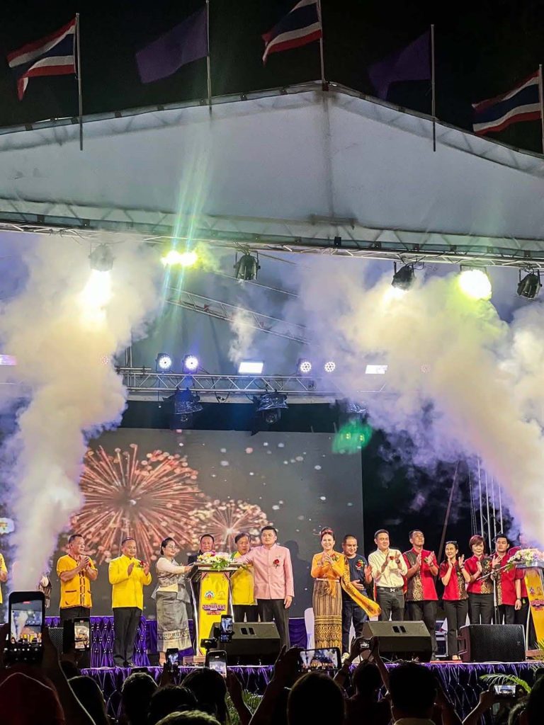 ภายในพิธีเปิด ผู้เข้าร่วมได้ร่วมชม ขบวนแห่นางรำสุดตระการตา กว่านับพันชีวิต จาก 34 ชุมชนเขตเทศบาลเมืองมุกดาหาร นำโดยคุณโยชิ รินรดา ธุรพันธ์ มิสทิฟฟานี่ยูนิเวิร์ส 2017 พร้อมการแสดงเปิดงานสุดอลังการที่สร้างความประทับใจแก่ผู้ชม.
