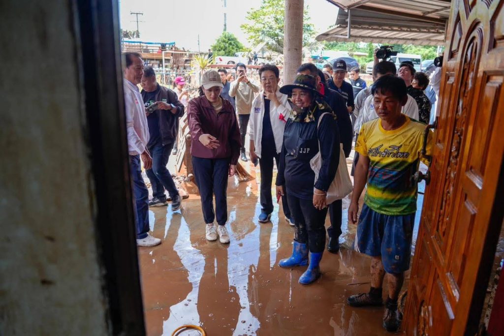 โดยนางสาวแพทองธาร ได้รับฟังการรายงานจากกำนันผู้ใหญ่บ้านว่าเป็นน้ำที่มาเร็วและไปเร็ว แม้จะได้รับการแจ้งเตือนแต่ก็ ไม่ทันได้ตั้งตัว จากนั้นหัวหน้าพรรคได้เข้าไปเยี่ยมบ้านเรือนของชาวบ้าน ซึ่งต่างเล่าให้ฟังว่าน้ำท่วมมิดหลังคา เป็นการท่วมที่ไม่ทันและไม่ได้ตั้งตัวอะไรเลย