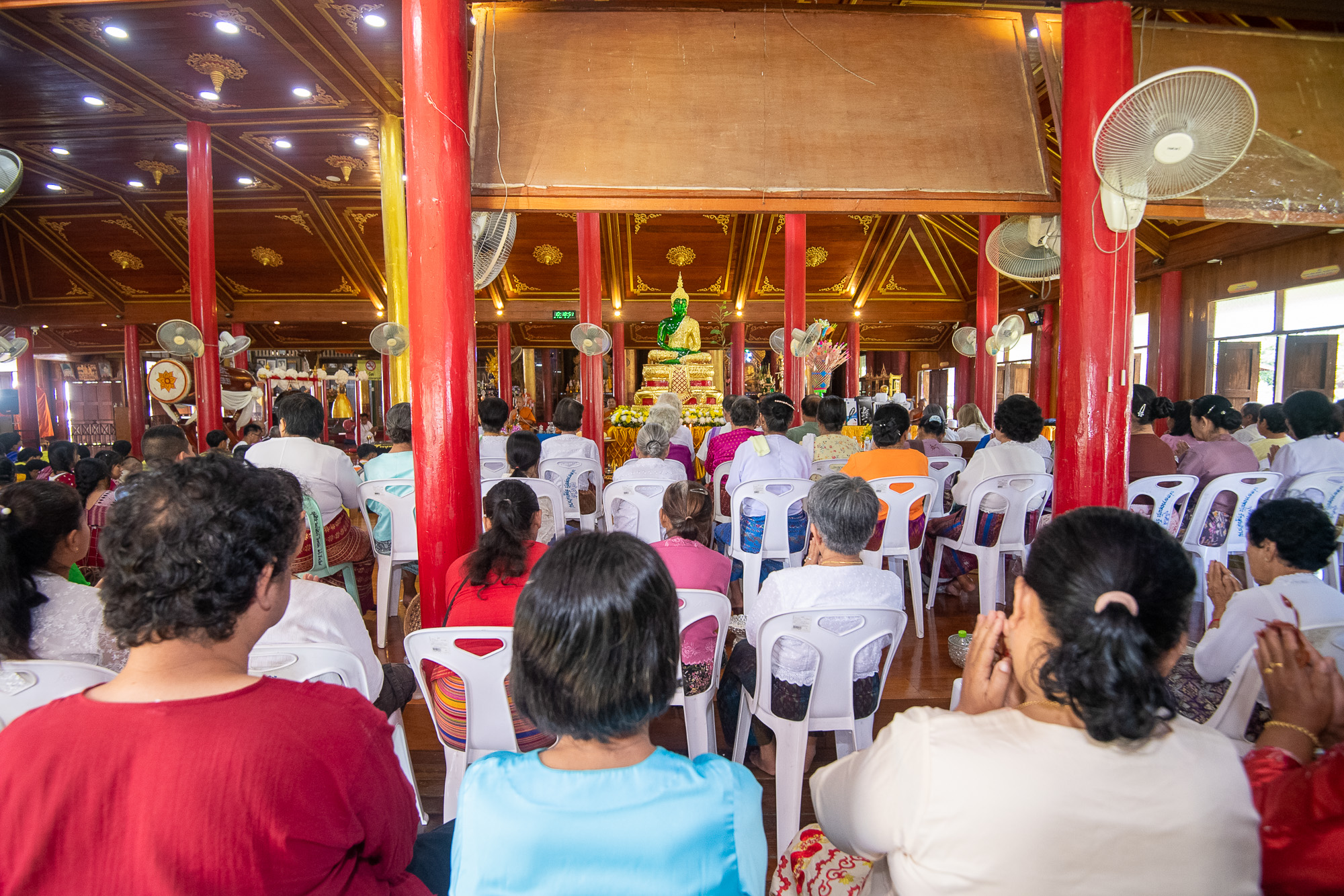 ทั้งนี้ภายในงาน ได้มีขบวนอัญเชิญพระแก้วมรกต กลองใหญ่ ฆ้องใหญ่ และระฆังใหญ่ ไปตามถนนรอบๆ หมู่บ้านเมืองปอน มีคณะศรัทธา ชาวบ้าน ร่วมอนุโมทนาบุญเป็นจำนวนมาก หลังจากนั้นมีการแสดงท้องถิ่น ต้อนรับคณะ ฯ มีพิธีทางสงฆ์ พิธีถวายพระแก้วมรกต คณะเจ้าภาพถวายเครื่องไทยทาน พระสงฆ์อนุโมทนา เป็นเสร็จพิธี.