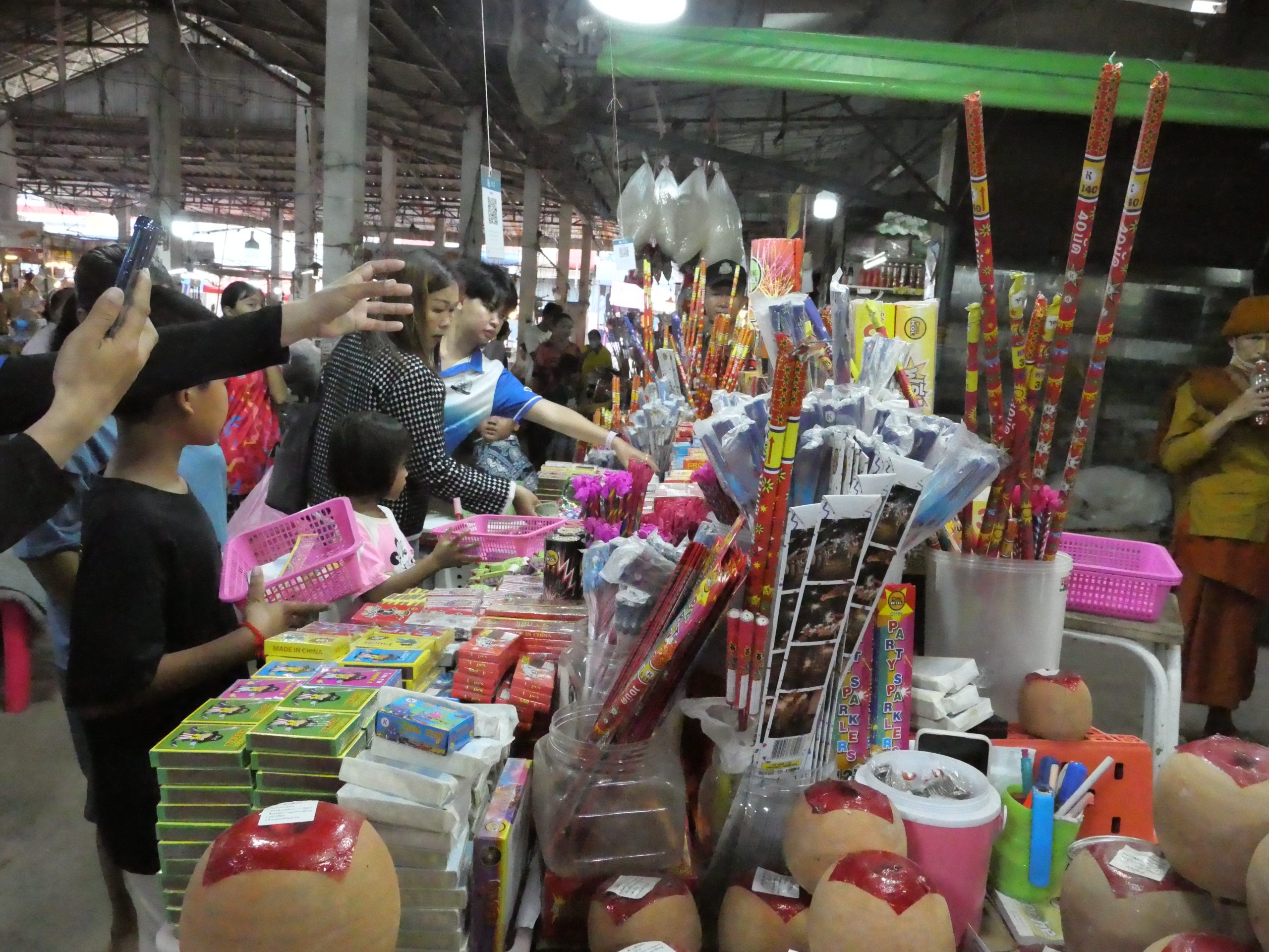 ในขณะที่ผู้สื่อข่าวสอบถามเจ้าของร้านค้าบอกว่าวันนี้ผู้คนเริ่มมาซื้อกันอย่างคึกคัก และคาดว่าในช่วงค่ำวันนี้และในวันพรุ่งนี้ผู้คนจะคึกคักกว่านี้ ในขณะเดียวกันทางร้านก็ไม่ได้เห็นแก่ผลประโยชน์ในการทำธุรกิจ ก็ได้ให้คำแนะแก่ผู้ปกครองที่พาลูกหลานมาซื้อให้ระมัดระวังในการเล่น ขณะที่พลุและดอกไม้เพลิงที่นำมาจำหน่ายก็ไม่ใช่วัตถุอันตราย หากไม่มีการนำไปดัดแปลง และเล่นด้วยความคึกคะนอง พร้อมให้คำแนะนำการเล่นดอกไม้เพลิง การจุดและการปล่อยพลุ ตะไล โคมลอย โคมไฟ โคมควัน เพื่อป้องกันอุบัติเหตุและอันตราย ที่อาจเกิดขึ้นในช่วงเทศกาลวันออกพรรษา งานบุญประเพณีทอดกฐิน และรวมไปถึงงานลอยกระทง