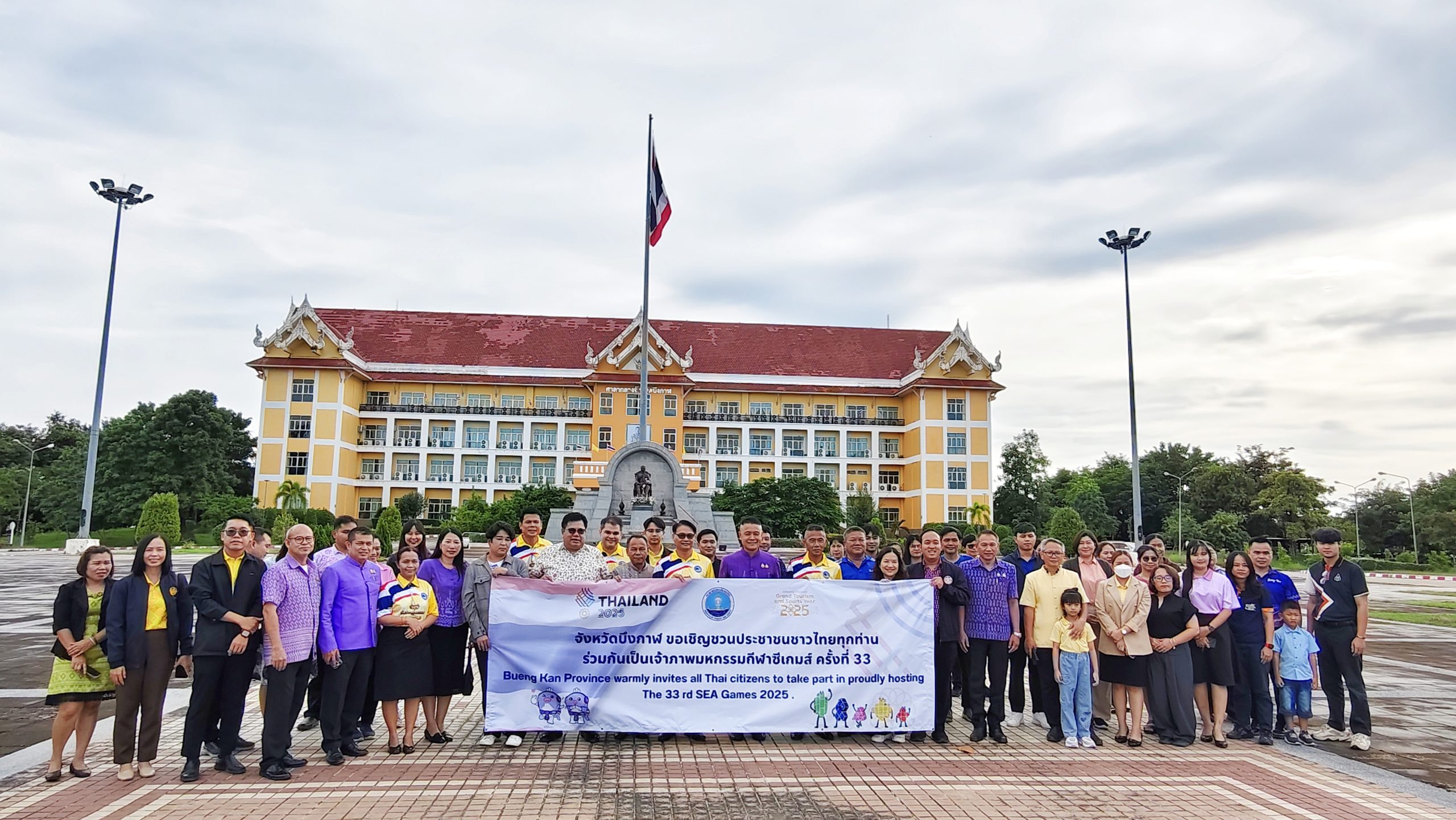 โดยได้รับเกียรติจาก นายนคร ศิริปริญญานันท์ และ นายสมหวัง อารีย์เอื้อ รองผู้ว่าราชการจังหวัดบึงกาฬ พร้อมด้วยหัวหน้าส่วนราชการจังหวัดบึงกาฬ ร่วมชูป้ายประชาสัมพันธ์เชิญชวนพี่น้องประชาชนคนไทยร่วมเป็นส่วนหนึ่งของเจ้าภาพซีเกมส์ครั้งนี้