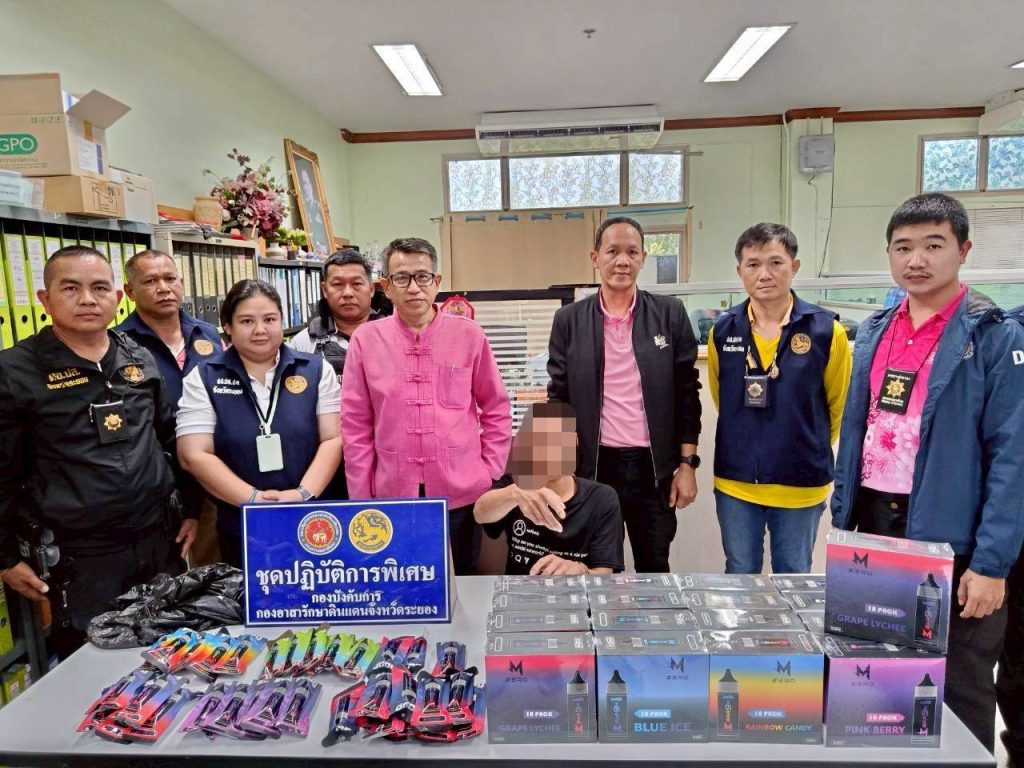ปกครองระยองบุกจับหนุ่มเวียดนามค้าบุหรี่ไฟฟ้า ยึดของกลางกว่า 200 ชิ้นกลางเมืองระยอง