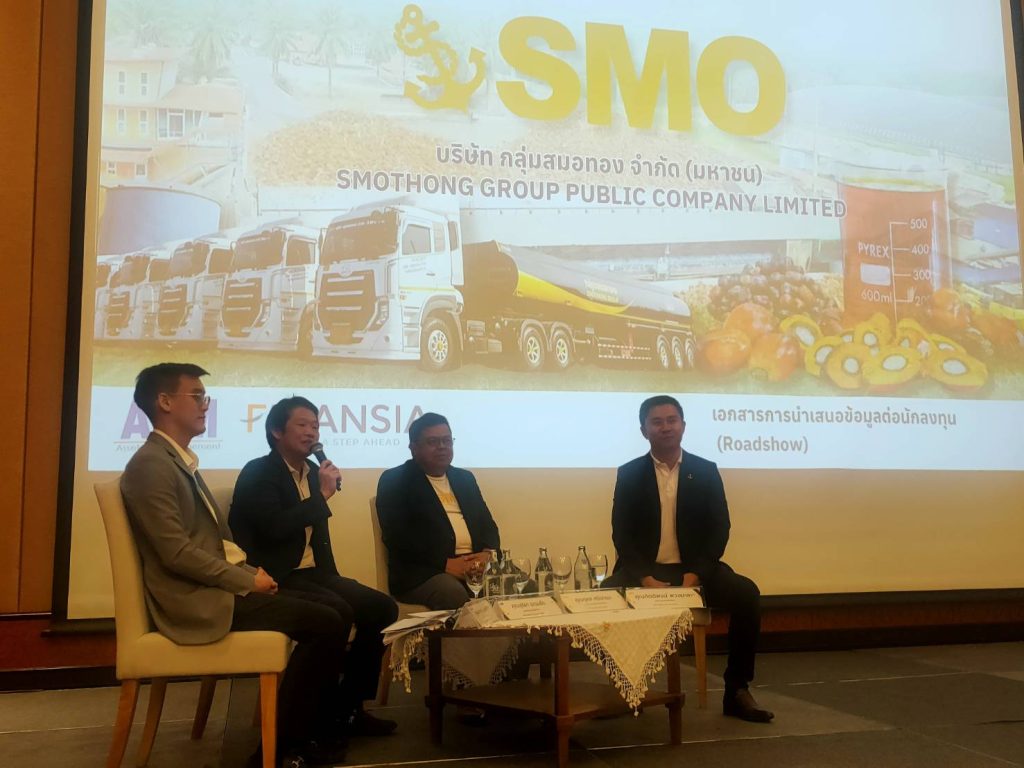 ในพื้นฐานธุรกิจแกร่งนักลงทุนตอบรับดี. ที่ห้องประชุมโรงแรม ไมด้า แกรนด์ ทาราวดี อ.เมือง จ.นครปฐ .นายกิตติพงษ์ พวงมาลา ประธานเจ้าหน้าที่บริหารและนายกุศล ศรีเปารยะ ประธานเจ้าหน้าที่บริหารการเงินกลุ่มบริษัทสมอทองจำกัด( มหาชน )หรือ SMO ซึ่งเป็นหนึ่งในผู้นำการผลิตและจำหน่ายน้ำมันปาล์มดิบของประเทศไทยที่มีโรงงาน จุดครอบคลุมพื้นที่ยุทธศาสตร์ของปามล์น้ำมันและธุรกิจผลิตจำหน่ายไฟฟ้าจากเชื้อเพลิงก๊าชชีวภาพ พร้อมด้วย ดร.สมภพ ศักดิ์พันธ์พนม ประธานกรรมการ นายสมศักดิ์ ศิริชัยนฤมิตร ประธานเจ้าหน้าที่บริหาร นายสุริยา ธรรมธีระ รองกรรมการผู้จัดการบริษัทแอสเชท โปร แมเนจเม้นท์ จำกัด ( APM )ในฐานะที่ปรึกษาทางการเงิน และนายสมภพ กีระสุนทรพงษ์ กรรมการผู้อำนวยการบริษัทหลักทรัพย์ ฟีนัสเฟียไซรัส จำกัด จำกัด( มหาชน ) ปักหมุดโรดโชว์ 11 จังหวัด ได้แก่ จ.ชลบุรี ราชบุรี นครปฐม พิษณุโลก นครสวรรค์ นครราชสีมา ขอนแก่น เชียงใหม่ สงขลา สุราษฎ์ธานี และปิดท้ายที่ กรุงเทพมหานคร โดยการนำเสนอข้อมูลทางการเงินและ สื่อมวลชนและภาคประชาชนในพื้นที่ จ.นครปฐม ให้ความสนใจพร้อมทั้งสอบถามของมูลทางธุรกิจของกลุ่ม SMO และAPM-FSS ที่เปิดโรดโชว์ในวันนี้ด้วยโอกาสเดียวกัน นายกิตติพงษ์ พวงมาลา ประธานเจ้าหน้าที่บริษัท กล่าวว่าธุรกิจน้ำมันปาล์มรวมถึงการผลิต และกำลังทุนการผลิต รวมไปถึงการส่งออกและโลจิติกส์ขยายตัวไปได้อย่างรวดเร็ว เราได้มีการพัฒนาและการเติบโตของธุรกิจเรามีผู้เชี่ยวชาญและมีฝ่ายกฎหมาย ในด้านการค้าระหว่างประเทศ อย่างมั่นคงและมีประสิทธภาพทั้งปัจจุบันและในอนาคตอย่างยั่งยืนต่อไป .