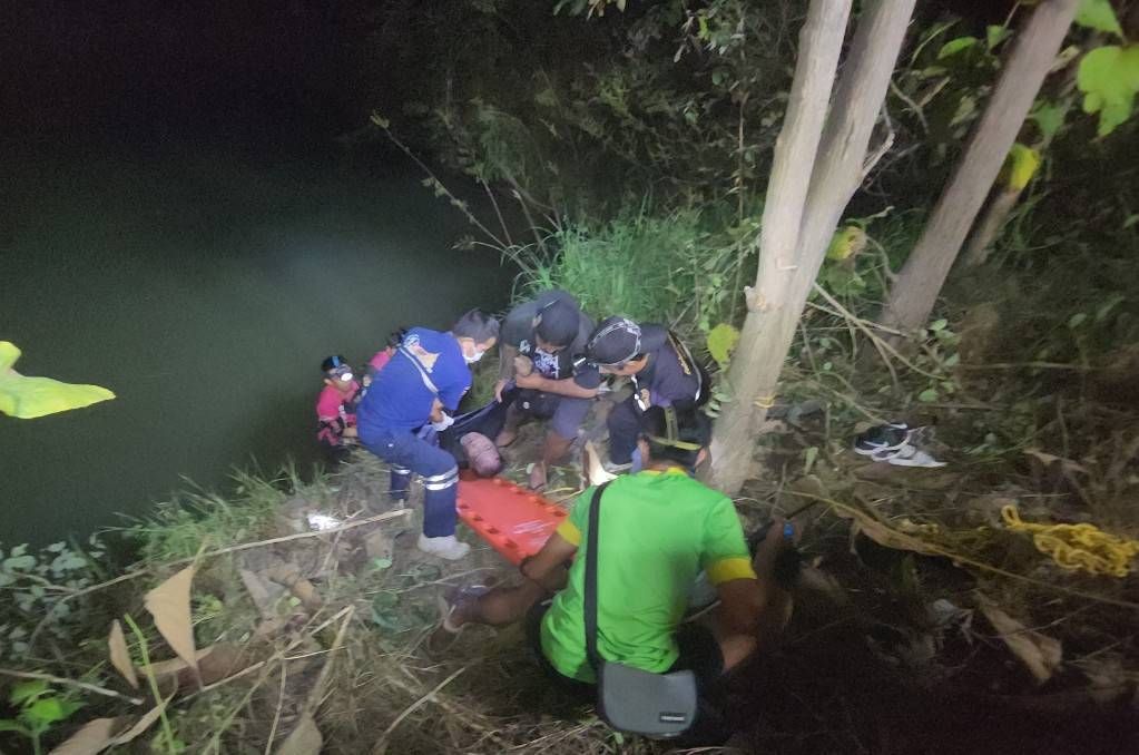 หนุ่มใหญ่กลับจากสีข้าวโพด รถจักรยานยนต์เสียหลักชนต้นไม้ตกสระน้ำ เสียชีวิตคาที่