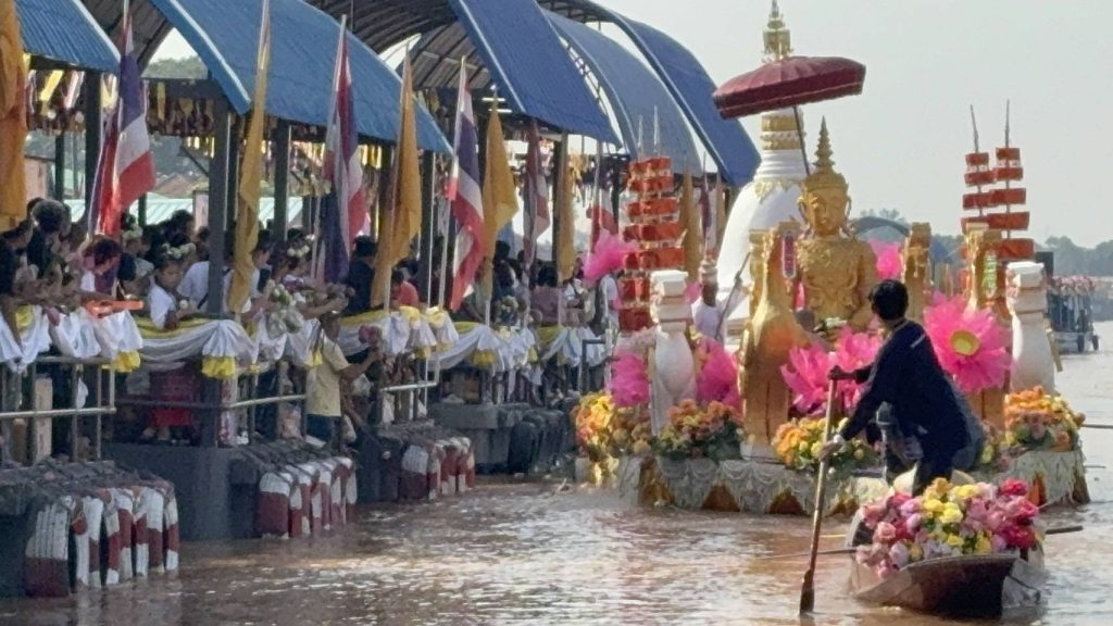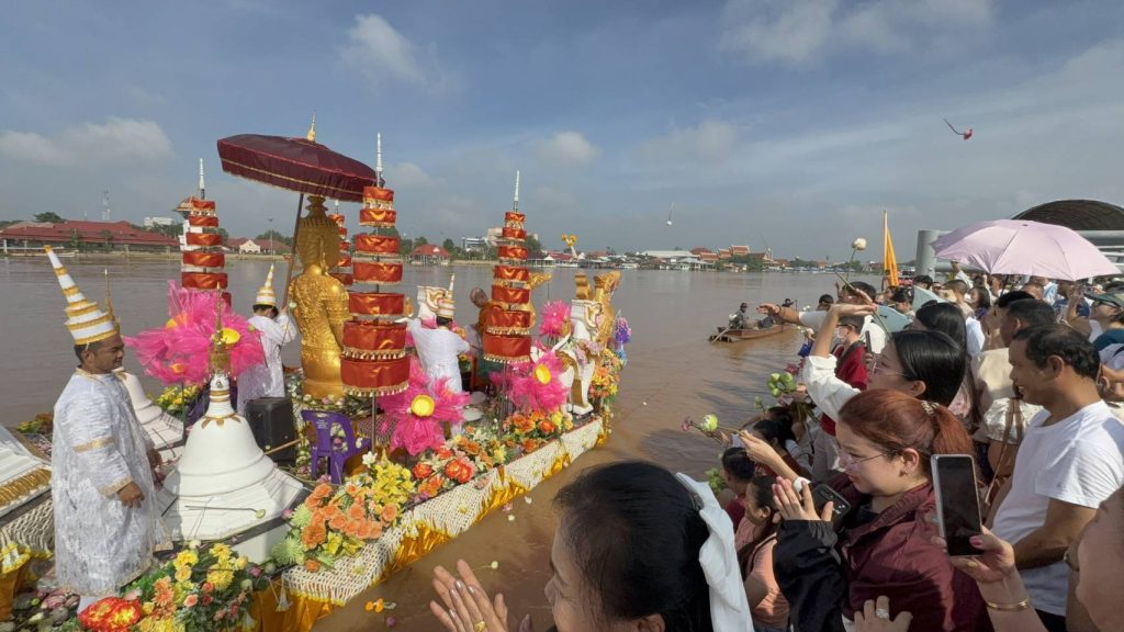 ปทุมธานี ชาวบ้านนับหมื่นร่วมงานทำบุญตักบาตรดอกบัว ริมแม่น้ำเจ้าพระยา