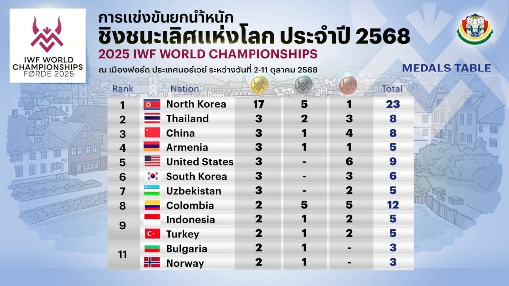 หลังเสร็จสิ้นการแข่งขันยกน้ำหนักชิงชนะเลิศแห่งโลก ประจำปี 2568 ระหว่างวันที่ 2-11 ตุลาคม 2568 ที่เมืองฟอร์ด ประเทศนอร์เวย์