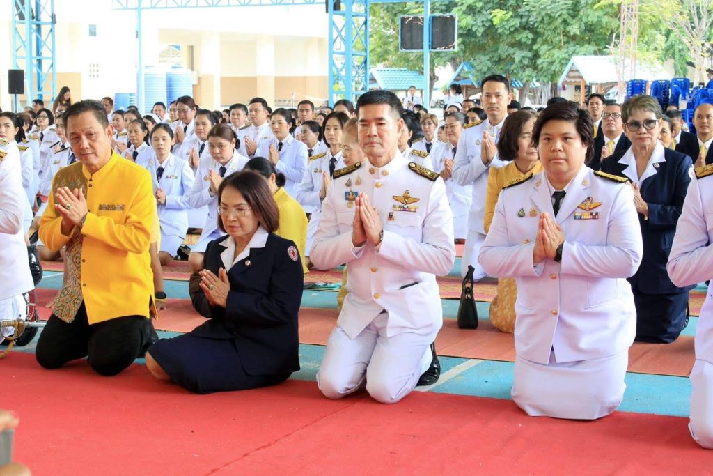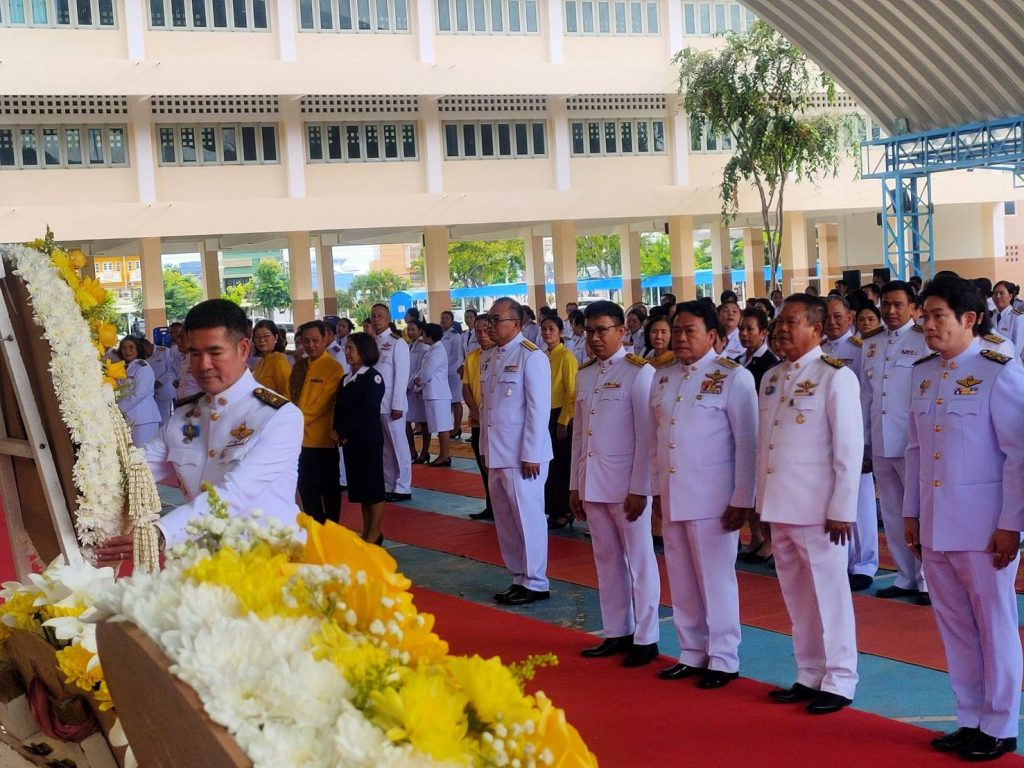 ในพิธีมีพระสงฆ์จำนวน 10 รูป สวดพระพุทธมนต์ พร้อมถวายจตุปัจจัยไทยทาน และทำบุญตักบาตรข้าวสารอาหารแห้งแก่พระสงฆ์ 99 รูป จากนั้นหน่วยงานราชการ 40 องค์กร ร่วมวางพวงมาลาดอกไม้สดหน้าพระบรมฉายาลักษณ์