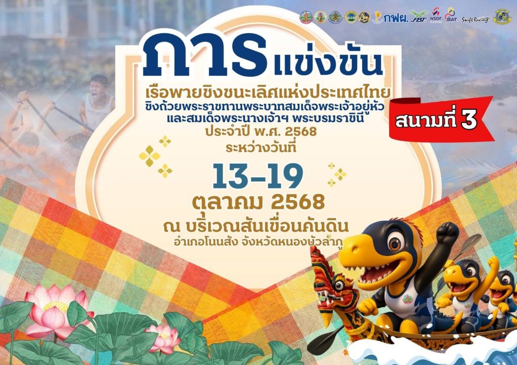 ขณะที่นางสาวอรอาภา โล่ห์วีระ รองผู้ว่าราชการจังหวัดหนองบัวลำภู กล่าวเชิญชวนแฟนคลับมาสัมผัสบรรยากาศอบอุ่น สนุกสนาน ท่ามกลางธรรมชาติ ริมเขื่อนอุบลรัตน์ จังหวัดขอนแก่น ที่อำเภอโนนสัง ชมการแข่งขันเรือพายสุดมันส์ อิ่มอร่อยกับเมนูอาหารปลาท้องถิ่นจากเขื่อนอุบลรัตน์ งานแข่งขันเรือพายซึ่งเป็นการแข่งขันเรือพายส่งท้ายเทศกาลแข่งเรือปลายปี ระหว่างวันที่ 16-19 ตุลาคม 2568 บริเวณสันเขื่อน อำเภอโนนสัง จังหวัดหนองบัวลำภู งานนี้จะมีนักกีฬากว่า 1,200 คน จาก 25 จังหวัดทั่วไทย มีกีฬาชิงชัย 5 ประเภท มีทีมร่วมแข่งขัน 41 ทีม