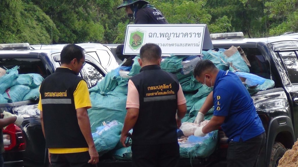 โดยจังหวัดมุกดาหารได้ประกาศเป็นเขตเฝ้าระวังโรคระบาดสัตว์ ชนิดอหิวาต์ แอฟริกาในสุกร (ASF) จึงได้อาศัยอำนาจตามมาตรา 13,40 พ.ร.บ.โรคระบาดสัตว์ พ.ศ. 2558 สั่งให้ทำลายของกลางดังกล่าวโดยวิธีฝังกลบ โดยการขุดหลุมลึกและพ่นยาฆ่าเชื้อโรค เพื่อป้องกันการแพร่ระบาดของโรคระบาดสัตว์อีกด้วย..
