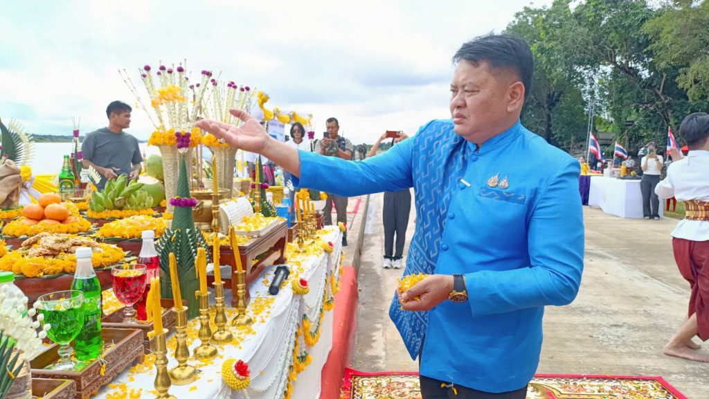จเรทหาร บวงสรวงสิ่งศักดิ์สิทธิ์เตรียมสร้างเขื่อนป้องกันตลิ่งบนเกาะดอนต่ำกลางน้ำโขงของไทย หลังได้งบก่อสร้าง 155 ล้านบาท หวังเป็นโมเดลแรกที่ทำกิจกรรมบนเกาะดอนในอธิปไตยของไทยตลอดลำแม่น้ำโขง