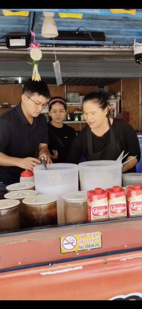 นักท่องเที่ยวชาวไต้หวัน ได้เรื่มเรียนรู้การชงกาแฟและวิธีการชงเครื่องดื่มชนิดอื่ นๆ ทั้งนมไทย ,ชาไทย ชานม,ชาเขียว ชามะนาว ,โอเลี้ยง(ยกล้อ) ตนบอกวิธีการและสูตร การผสมให้ นักท่องเที่ยวชาวไต้หวัน ได้ลงมือทำตอนแรกก็ติด ขัดไม่คล่อง ผ่านไป 3 ชั่วโมง เรื่มคล่องและทำให้กับลูกค้าแทนตนได้เลย