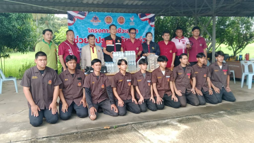 ดร.ปรีชา ภู่สมบัติขจร ประธานอาชีวศึกษาอุตรดิตถ์/ผู้อำนวยการวิทยาลัยเทคนิคอุตรดิตถ์ นายพิทยาธรณ์ แจ่มมีศรี รองผู้อำนวยการวิทยาลัยเทคนิค นางสาวธัญญ์พิชชา ท้วมทับ รองผู้อำนวยการวิทยาลัยเทคนิคอุตรดิตถ์ ร่วมกันลงพื้นที่เยี่ยมเยียนหน่วยอาชีวะอาสาร่วมด้วยช่วยประชาชนและมอบน้ำดื่มและเยี่ยมให้กำลังใจ