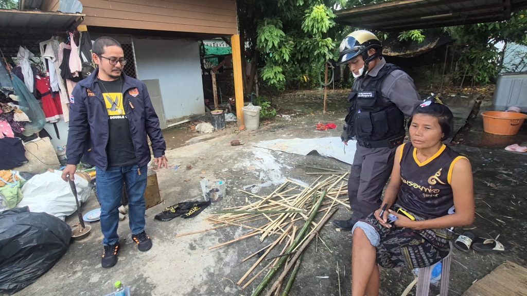 สาวทาสยาเพี้ยนถือมีดอีโต้ขู่ฆ่าแม่ไม่พอใจห้ามเอากิ่งไม้เข้าบ้าน ก่อนโดนตำรวจนำส่งรพ.บำบัด