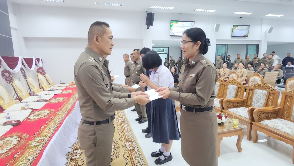 ตำรวจภูธรจังหวัดระยอง จัดงานวันตำรวจแห่งชาติ ประจำปี 2568 ทำบุญถวายภัตตาหารพระสงฆ์-มอบทุนการศึกษาบุตรข้าราชการตำรวจ