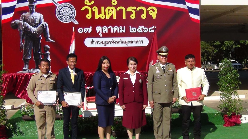 พ.ต.อ.วิจิตร บุญวรรณ ผู้กำกับการสืบสวน ตำรวจภูธรจังหวัดมุกดาหาร กล่าวว่า ด้วยตำรวจภูธรจังหวัดมุกดาหารกำหนดจัดงาน “วันตำรวจ” ประจำปี ๒๕๖๖๘ โดยจัดพิธีกล่าวคำสัตย์ปฏิญาณตน และอุดมคติตำรวจ พิธีมอบประกาศเกียรติคุณข้าราชการตำรวจดีเด่นด้านต่าง ๆ และผู้สนับสนุนงานราชการตำรวจ และจัดพิธีเจริญพระพุทธมนต์เพื่อความเป็นสิริมงคลแก่ข้าราชการตำรวจทุกนาย โดยในรอบปีที่ผ่านมานั้น การปฏิบัติหน้าที่ของข้าราชการตำรวจในสังกัดตามภารกิจที่รับมอบหมายสามารถประสบผลสำเร็จได้ ด้วยได้รับ ความร่วมมือสนับสนุนช่วยเหลือจากหน่วยงานของทางราชการ องค์กรปกครองส่วนท้องถิ่น ภาคเอกชน ประชาชนในพื้นที่ อีกทั้งข้าราชการตำรวจในสังกัดตำรวจฎธรจังหวัดมุกดาหารได้ทุ่มเท แรงกายแรงใจในการปฏิบัติหน้าที่จนการกิจที่ได้รับมอบหมายสามารถบรรลุวัตถุประสงค์และสนองตอบต่อนโยบายของสำนักงานตำรวจแห่งชาติได้ผลเป็นที่น่าพอใจ