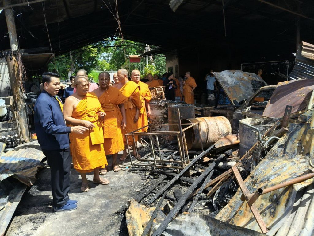ซึ่งได้มี นางชะลอ บุญซิม ได้ได้รับบาดเจ็บจากไฟลวกที่หน้าผากและแขนขวา พร้อมด้วยครอบครัวรอให้การต้อนรับที่ในอู่ดังกล่าว หลังจากที่ทางคณะได้เดินทางมาถึงเจ้าคณะภาค 3 ได้เป็นตัวแทนของตณะสงฆ์ได้กล่าวให้กำลังใจกับเหตุการณ์ที่เกิดขึ้น ทั้งนี้สืบเนื่องมาจากที่ นางชะลอ ได้สมัครเป็นสมาชิกของโครงการกองทุน “สังฆประชานุเคราะห์ คณะสงฆ์จังหวัดลพบรี” ทางคณะสงฆ์ได้เดินทางนำเครื่องอุปโภค บริโภค และเงินสดจำนวน 1 แสนบาทมาให้การช่วยเหลือในเบื้องต้นตามที่โครงการกำหนด นอกจากนี้ทางส่วนราชการ ทางกาชาดจังหวัด ทางมูลนิธิก็จะเข้ามาให้การช่วยเหลืออีก