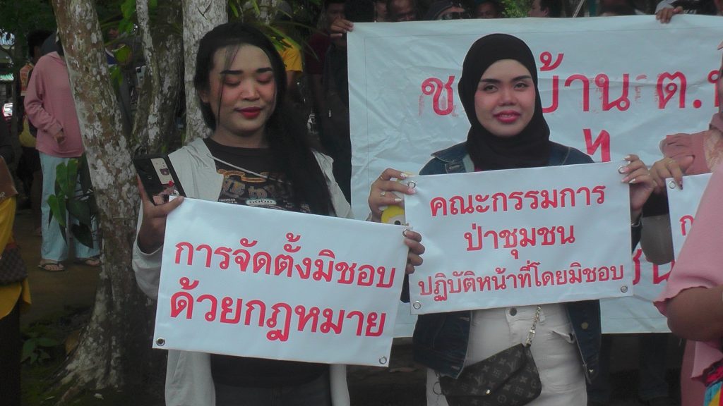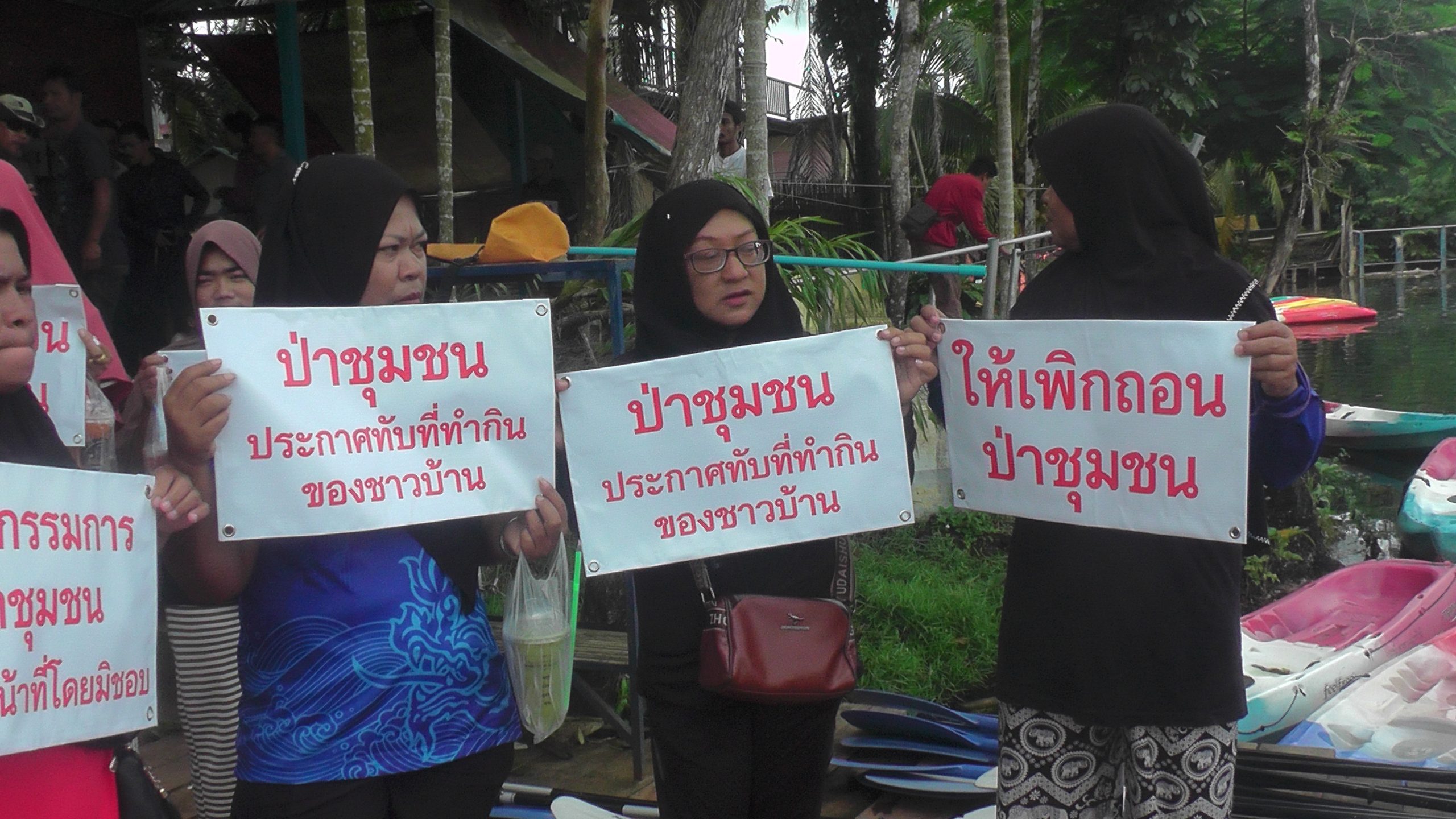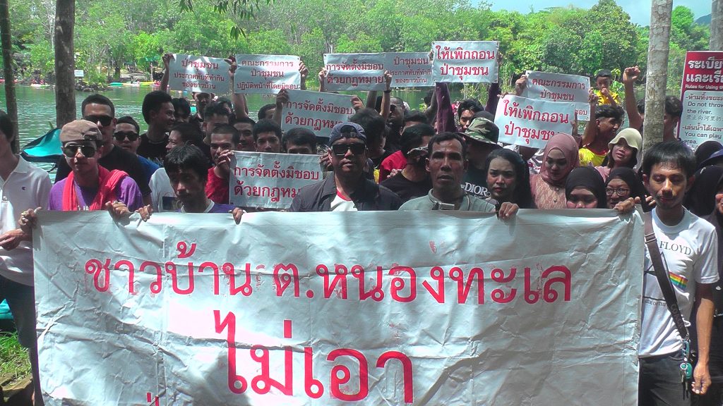 โอกาสนี้นายนิติ ดำริการ แกนนำตัวแทนกลุ่มวิสาหกิจชุมชนท่องเที่ยวตำบลหนองทะเล กล่าวว่าการออกมาทำกิจกรรมในวันนี้เพื่อต้องการให้ยกเลิกป่าชุมชนและคณะกรรมการป่าชุมชนบ้านแหลมสอม ที่ตั้งขึ้นมาโดยไม่ชอบด้วยกฎหมายไม่มีการทำประชามติ ไม่มีการทำประชาวิจาร ซึ่งวชาวบ้านส่วนใหญ่ไม่ได้รับรู้และข้อมูลข่าวสารในการตั้งคณะกรรมการดังกล่าวอย่างแท้จริง ที่ให้ยกเลิกป่าชุมชนและคณะกรรมการเพื่อป้องกันความขัดแย้งและปัญหาที่เกิดขึ้นมาอย่างยาวนานหลายปีมาแล้ว จึงขอให้หน่วยงานภาครัฐที่เกี่ยวข้องยกเลิกป่าและกรรมการออกจากพื้นที่ตำบลหนองทะเล โยเฉพาะนักท่องเที่ยวที่พายเรือคายัคในคลองหรูดและคลองน้ำใส ที่ถูกคณะกรรมการป่าชุมชนดังกล่างคุกคามทำร้ายร่างกายนักท่องเที่ยว มีการแจ้งความกับมากมายที่สถานีตำรวจภูธรตำบลอ่าวนาง ทำให้เกิดความเสียหายในพื้นที่เสียภาพลักษณ์ของการท่องเที่ยวของจังหวัดกระบี่อย่างรุนแรง
