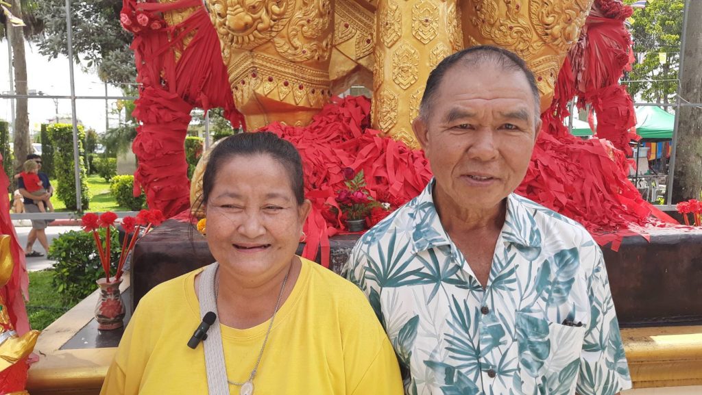 ส่วนทางด้านนางสาวหนูพิณ จันทจร นำน้ำแดง 4 แพ็คพร้อมเครื่องเซ่นไหว้มาแก้บนท้าวเวสสุวรรณ หลังดลบันดาลให้ผ่าตัดสำเร็จลุล่วงไปด้วยดี นางสาวหนูพิณกล่าวว่า ตนเอง มีอาชีพรับจ้างทั่วไป ขณะกลับบ้าน ตนได้เกิดอุบัติเหตุจนทำให้เอ็นที่หัวไหล่เกิดการฉีกขาดต้องรักษาตัวที่โรงพยาบาล ตนเองรู้สึกกังวลเป็นอย่างมากเพราะตนต้องทำงานรับจ้างทั่วไปต้องหาเช้ากินค่ำ และตนเพิ่งเคยผ่าตัดเป็นครั้งแรก ตนเองจึงได้มาบนบานขอพรกับท้าวเวสฯว่าขอให้การผ่าตัดเป็นไปด้วยดี แม้ตนจะเชื่อว่าการรักษาปัจจุบันจะก้าวหน้าแต่ตนเองยังรู้สึกกังวลใจเพราะไม่เคยผ่าตัดมาก่อนครั้งนี้เป็นครั้งแรก แล้วผลปรากฏว่าการผ่าตัดเป็นไปด้วยดี นางสาวหนูพิณยังกล่าวอีกว่าก่อนหน้านี้ตนเองก็เคยมาขอพรกับท้าวเวสสุวรรณในเรื่องโชคลาภมาแล้วและก็ประสบความสำเร็จมาหลายครั้ง ซึ่งการมาขอพรให้ผ่าตัดสำเร็จลุล่วงไปด้วยดีนั้นเพิ่งเคยขอเป็นครั้งแรก รู้สึกดีใจเป็นอย่างมากที่ผลสำเร็จจากการผ่าตัดเป็นไปด้วยดีตนเองกลับมาใช้ชีวิตได้ตาปกติ วันนี้จึงเดินทางมาแก้บนดังกล่าว และก่อนกลับยังได้จุดธูปเสี่ยงทายได้เลข 889 นำกลับไปลุ้นโชคอีกครั้ง