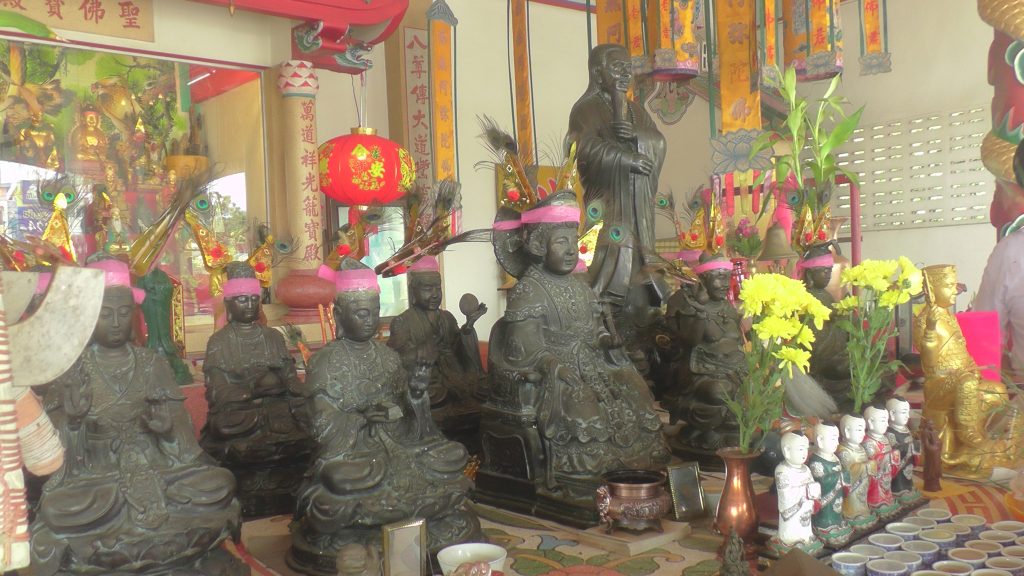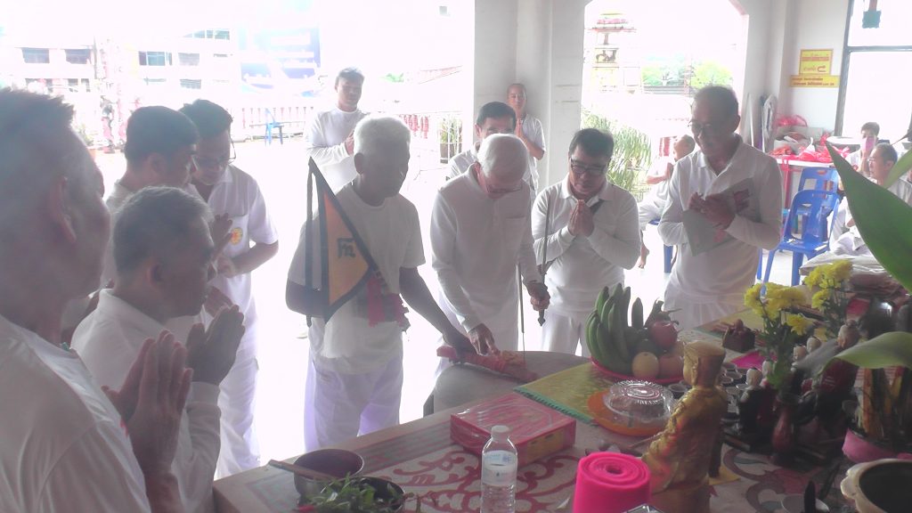 ประธานจัดงานประเพณีถือศีลกินเจศาลเจ้ามูลนิธิประชาสันติสุขจังหวัดกระบี่ และคณะะกรรมการร่วมประกอบพิธียกเสาโกเด้งและโคมประทีปสู่ยอดเสา พิธีเปิดหอเทวดาฉิกไท้ พิธีอัญเชิญธงพระพุทธเจ้า 3ภาคทั้ง 10 ทิศ พิธีอัญเชิญธงวิญญาณทั้ง 10 ประเภท พิธีเทพเจ้าและเทวดาผู้กำหนดเวลาเกิดและเวลาตาย พิธีสวดมนต์เปิดมณฑลพิธีไคตั้ว พิธีสวดมนต์ถวายพระพุทธเจ้าบูชาก้งฮุก และพิธีอัญเชิญพระผู้เป็นใหญ่ทั้ง 9 เข้าประจำศาลเจ้าดังกล่าว รวมถึงม้าทรง และเปิดโรงทานรับประทานอาหารเจฟรีตลอด 9 วัน 9 คืน