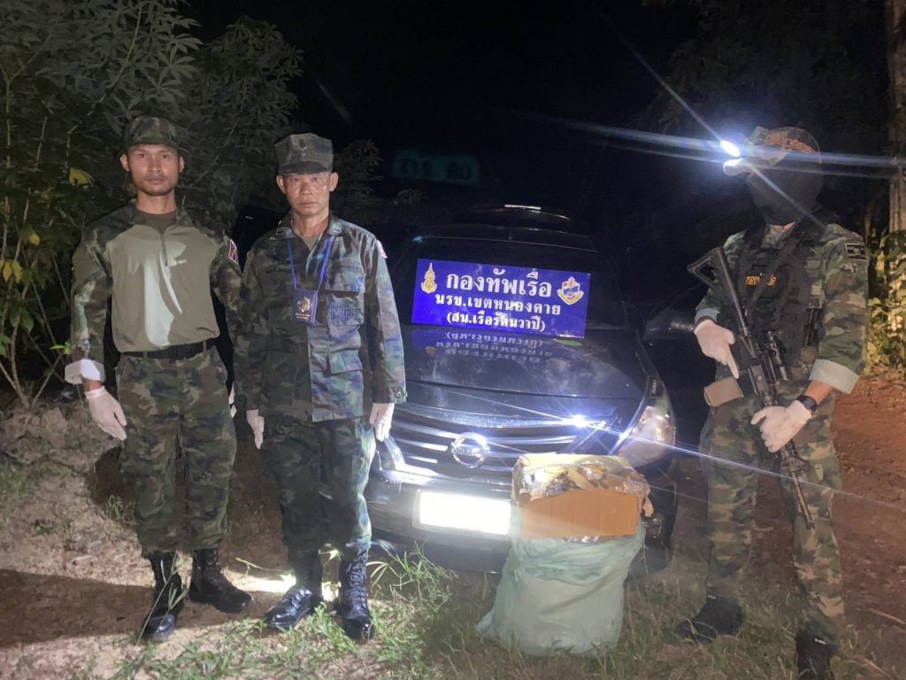 สืบเนื่องจากเจ้าหน้าที่ กกล.สุรศักดิ์มนตรี (บก.ควบคุมที่ 2 (ร.13)โดย สถานีเรือรัตนวาปี ร่วมกับ ชุด ชปพ.นรข. (มว.ทำลายใต้น้ำจู่โจม) ได้รับแจ้งว่า จะมีขบวนการค้ายาเสพติดจากฝั่งประเทศเพื่อนบ้าน จะลำเลียงยาเสพติด ข้ามมายังฝั่งไทย ในพื้นที่ อ.รัตนวาปี กระทั่งเมื่อวันที่ 19 ต.ค. 68 เวลาประมาณ 17.45 น. กกล.สุรศักดิ์มนตรี โดย พ.อ.ชูชาติ นนทบุตร ผบ.บก.ควบคุมที่ 2 (ร.13) และ พ.อ.เรวัฒ ธรรมจิรเดช รอง ผบ.บก.ควบคุมที่ 2 (ร.13),น.อ.วิศิษฐ์พงศ์ เจริญวิชญเดช ผบ.นรข.เขตหนองคาย อำนวยการให้ สน.เรือรัตนวาปี นรข.เขตหนองคาย โดย ชปพ.นรข. และ จนท.สน.เรือรัตนวาปี กระจายกำลังเฝ้าตรวจพื้นที่ริมฝั่งแม่น้ำโขง เขตอำเภอรัตนวาปี และพบรถเก๋งต้องสงสัยดังกล่าว ขับออกจากพื้นที่ ชุดติดตามได้ออกติดตามอย่างใกล้ชิดและจะขอตรวจค้น แต่คนขับได้ขับรถยนต์หลบหนี มาบนถนน หมายเลข 3010 เเละได้ทิ้งรถไว้ในซอยวัดนักบุญมาร์ติน บ้านนาสิงห์ ตำบลพระบาทนาสิงห์ อำเภอรัตนวาปี เนื่องจากเป็นซอยตัน ส่วนคนขับได้วิ่งเข้าป่าหลบหนีไปได้ เจ้าหน้าที่ตรวจค้นรถเก๋งยี่ห้อนิสสัน สีดำ หมายเลขทะเบียน กษ 512 อุดรธานี พบสิ่งของบรรจุอยู่ในกล่องพัสดุสีน้ำตาล ห่อด้วยถุงกระสอบสีเขียวอ่อน ตรวจสอบเบื้องต้น พบเป็นยาบ้า จึงนำมาตรวจนับอย่างละเอียดที่ สน เรือนรัตนวาปีส่วนคนขับรถเก๋งหลบหนีไปได้ เบื้องต้นทราบว่า รถยนต์คันดังกล่าวเช่าจากพื้นที่ จังหวัดอุดรธานี รวมยาบ้าที่ตรวจยึดครั้งนี้ 200,000 เม็ด และรถยนต์เก๋ง 1คัน