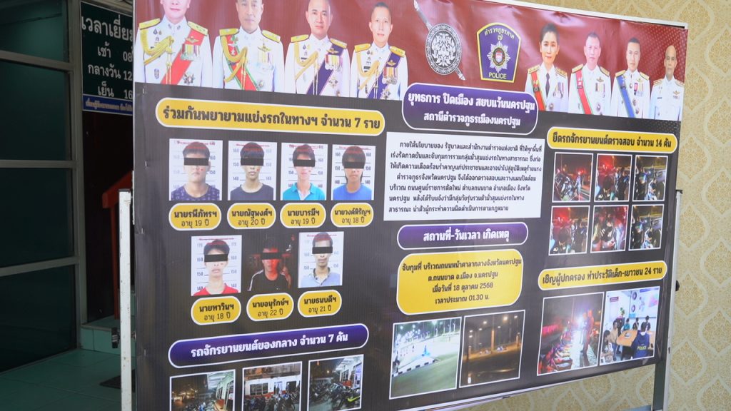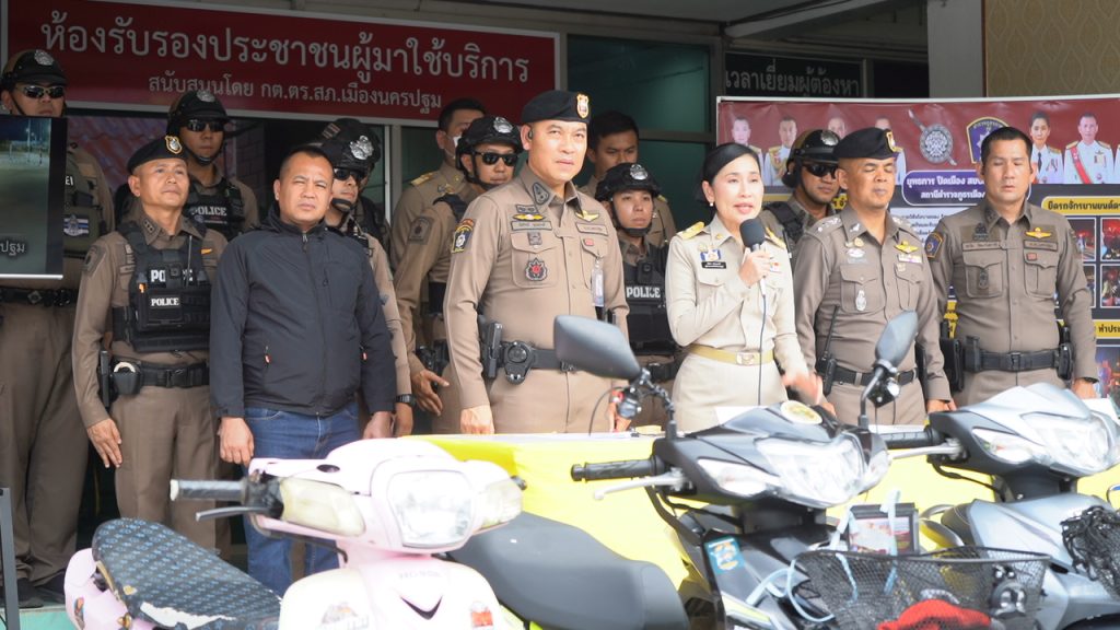 ผบก.ภ.จว.นครปฐม และ ผวจ.นครปฐม ร่วมกันแถลงข่าว ผลการจับกุมผู้ต้องหา ตามยุทธการ “ปิดเมือง..สยบแว้นนครปฐม” จับกุมดำเนินคดี 7 คน พร้อมยึดของกลางรถ จยย. จำนวน 7 คัน ตกเป็นของแผ่นดิน ส่วนอีก 14 คัน ยึดไว้ตรวจสอบเพิ่มเติม พร้อมทำประวัติเด็กและเยาวชน เรียกผู้ปกครองมาให้คำแนะนำ ตักเตือน จำนวน 24 ราย