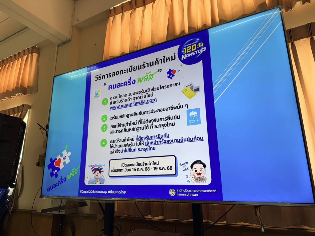 วันที่ 20 ตุลาคม 2568 เวลา 10.00 น. ณ ห้องประชุมอำเภอพรหมบุรี ชั้น 2 อำเภอพรหมบุรี จังหวัดสิงห์บุรี นายฐิติพงศ์ วิชัยสาร นายอำเภอพรหมบุรี เป็นประธานการประชุมซักซ้อมแนวทางเพื่อสนับสนุนการดำเนินงาน โครงการ “คนละครึ่งพลัส” ครั้งที่ 1/2568 โดยมีนางสาวกวิสรา ศรีชัย ปลัดอำเภอฝ่ายปกครอง กำนันทุกตำบล ร้านค้า และผู้เข้าร่วมโครงการฯ เข้าร่วมประชุมอย่างพร้อมเพรียง เพื่อร่วมกันขับเคลื่อนนโยบายสำคัญด้านเศรษฐกิจของรัฐบาลให้เกิดผลเป็นรูปธรรมในพื้นที่