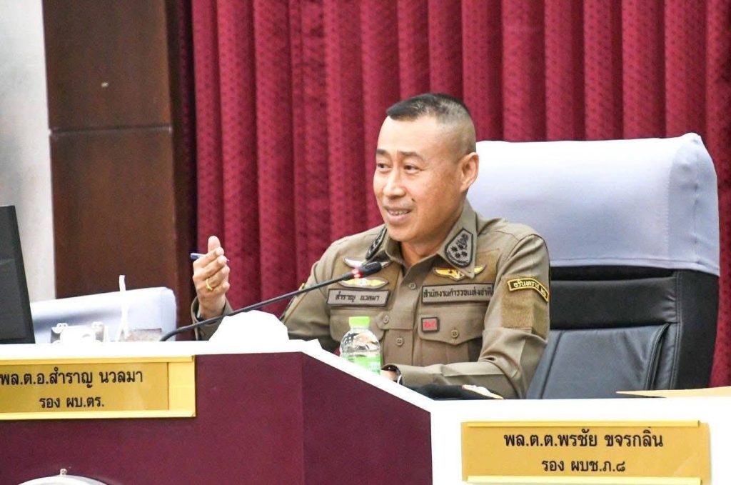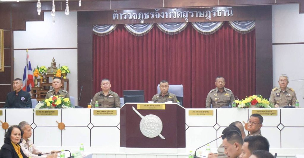เมื่อเวลา 18.00 น. ของวันที่ 20 ตุลาคม68 ที่ห้องประชุม กองบังคับการตำรวจภูธรจังหวัดสุราษฎร์ธานี พลตำรวจเอกสำราญ นวลมา รองผู้บัญชาการตำรวจแห่งชาติ เป็นประธานการประชุมติดตามผลการปฎิบัตตามนโยบายของรัฐบาลและนโยบายของผู้บัญชาการตำรวจแห่งชาติ กรณีมีการพบความผิดเกี่ยวกับการถือครองที่ดินและประกอบกิจการหรือดำเนินธุรกิจแทนคนต่างด้าวโดยผิดกฎหมายหรือคดีนอมินีซึ่งกระทบต่อความมั่นคงทางเศรษฐกิจของประเทศ โดยมีนายบันดาล สถิรชัวาล รอง ผวจ.สุราษฎร์ธานี พร้อมด้วยหน่วยงานที่เกี่ยวข้องในฐานะคณะทำงานเฉพาะกิจเพื่อป้องกันปราบปรามการกระทำผิดของคนต่างด้าวตามคำสั่งผู้ว่าราชการจังหวัดสุราษฎร์ธานีเข้าร่วมประชุมในครั้งนี้