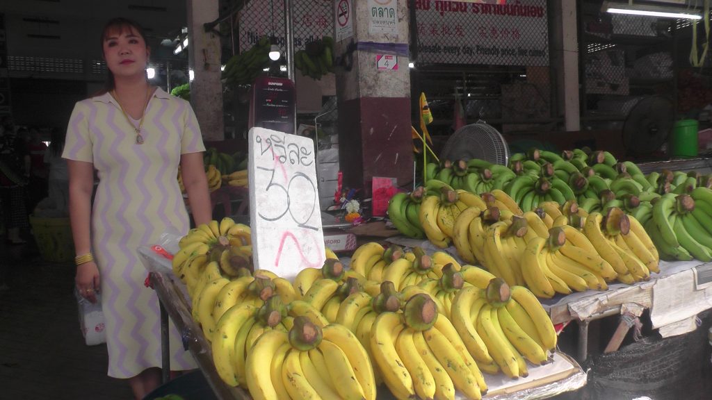 ผลไม้ส่วนใหญ่ราคายังคงเท่าเดิมเช่น สับปะรดลูกละ 35 – 45 บาท กล้วยหอมทองหวีๆละ 35 – 60 บาท องุ่นกิโลกรัมละ 100 – 120 บาท แอบเปิ้ลลูกละ 7 – 10 บาท สมเขียวหวาน ส้มโชกุล กิโลกรัมละ 60 บาท ส่วนแตงโมราคาลดลงจากกิโลกรัมละ 35 บาท ลดลงเหลือกิโลกรัมละ 20 บาท