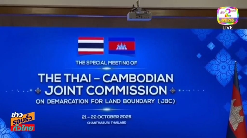 วันนี้ (21 ต.ค. 68) ที่ โรงแรมมณีจันท์ อ.เมือง จ.จันทบุรี ซึ่งเป็นสถานที่จัดการประชุมคณะกรรมาธิการเขตแดนร่วม (JBC) ไทย-กัมพูชา สมัยวิสามัญ ระหว่างวันที่ 20-23 ตุลาคม 2568 ที่ประเทศไทยเป็นเจ้าภาพจัดการประชุมคณะกรรมการเขตแดนร่วมไทย–กัมพูชา (JBC) สมัยวิสามัญ วันที่ 21–22 ตุลาคม 2568 โดยได้เชิญฝ่ายกัมพูชาเข้าร่วมพูดคุย โดยมีนายประศาสน์ ประศาสน์วินิจฉัย เอกอัครราชทูตและที่ปรึกษากระทรวงการต่างประเทศด้านเขตแดน เป็นประธาน JBC ฝ่ายไทย และยังมีผู้แทนจากสภาความมั่นคงแห่งชาติ ผู้แทนกระทรวงกลาโหม ผู้แทนกระทรวงมหาดไทย และเหล่าทัพของไทยเข้าร่วมหารือกับ นาย ฬำ เจีย รัฐมนตรีรับผิดชอบกิจการชายแดนและหัวหน้าสำนักงานเลขาธิการกิจการชายแดนแห่งชาติกัมพูชา ที่มาเป็นประธาน JBC ฝ่ายกัมพูชา ด้วย การประชุมครั้งนี้ได้มีความเคลื่อนไหวจากภาคประชาชน เมื่อเครือข่ายนักศึกษาประชาชนปฏิรูปประเทศไทย (คปท.) นำโดย นายพิชิต ไชยมงคล ได้เดินทางเข้ายื่นหนังสือถึง นายมนต์สิทธิ์ ไพศาลธนวัฒน์ ผู้ว่าราชการจังหวัดจันทบุรี เพื่อแสดงจุดยืนคัดค้านและเรียกร้องให้มีการยกเลิกการประชุมดังกล่าว เนื่องจากมีความกังวลอย่างยิ่งว่าการดำเนินการตามกรอบความตกลงเดิมอาจนำมาซึ่งการสูญเสียอธิปไตยและผลประโยชน์ของชาติไทย
