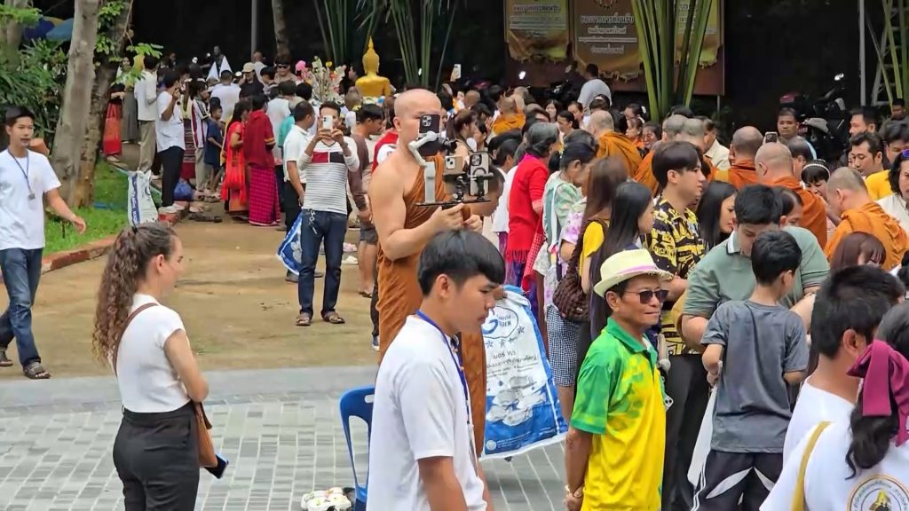 และภายในงานยังพบว่ามีอินฟูอินเซอร์มาถ่ายภาพและไลน์สดในเพจของตัวเองกันหลายคน ที่ใช้กล้องโทรศัพท์เพียงกล้องเดียว ( ไม่มีภาพอินฟูคนอื่น ) แต่สังเกตุได้ว่ามีพระสงฆ์รูปหนึ่งก็น่าเป็นอินฟูอินเซอร์เช่นกันก็มาถ่ายภาพและไลน์สดในงานเหมือนกัน แต่พระสงฆ์รูปนี้ไม่ธรรมดา มารูปเดียวแต่มีกล้องโทรศัพท์ถึง 3 เครื่อง ถ่ายภาพไลน์สดอย่างขะมักเขม้น และยังใช้เก้าอี้มายืนถ่ายเพื่อให้ได้ภาพสวยงามที่สุด สอบถามพระสงฆ์รูปนี้ได้ความว่า ได้มาไลน์สดทางเฟสผ่านช่องทางเพจทองวัดสังฆทาน จังหวัดนนทบุรี เพื่อเผยแพร่ เนื่องจากวัดถ้ำเขาวงแห่งนี้เป็นสาขาของวัดสังฆทาน และถ่ายลงติ๊กต๊อกในช่องส่วนตัว ( เสียงที่พูกออกมาว่าเป็นช่องติ๊งต่อง ) และกล้องโทรศัพท์อีกเครื่องถ่ายไว้เพื่อตัดคลิปทำคอนเท้นประชาสัมพันธ์ในเพจของวัดสังฆทานอีกครั้งหนึ่ง