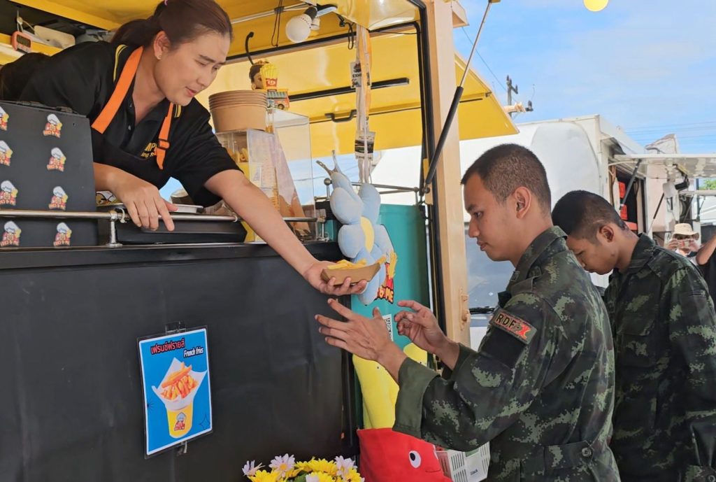 สุรินทร์-กลุ่มคาราวานฟู๊ดทรัค ขนทัพลงพื้นที่มอบความสุขอิ่มท้องให้กับกำลังพลทหารแนวหน้าในพื้นที่สุรินทร์