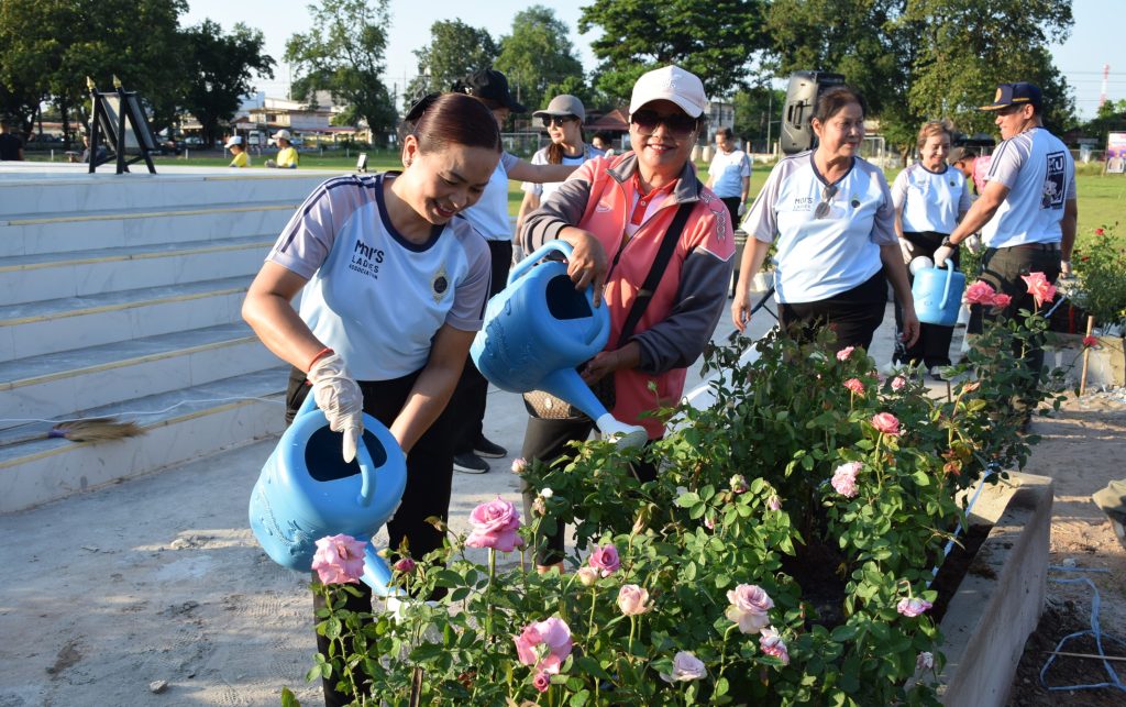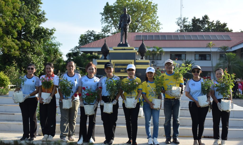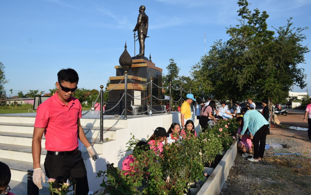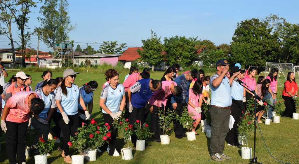 นายอำเภอเพทายฯนำบุคลากรรวมใจภักดิ์ปลูก”กุหลาบหลากหลายพันธุ์”
