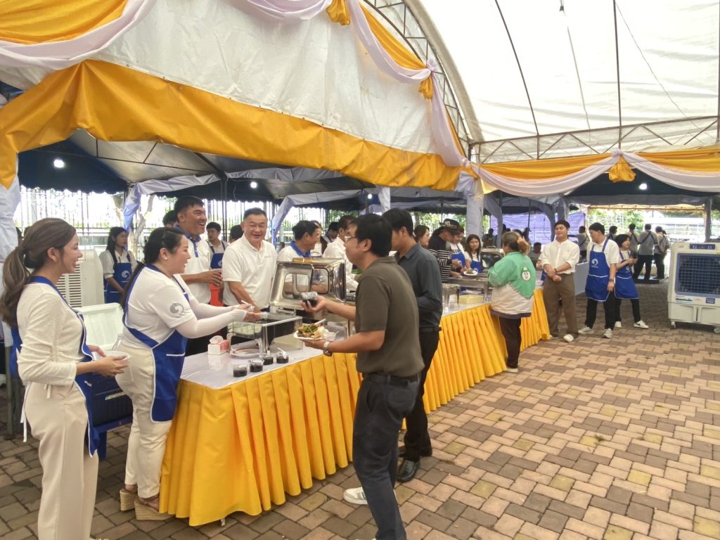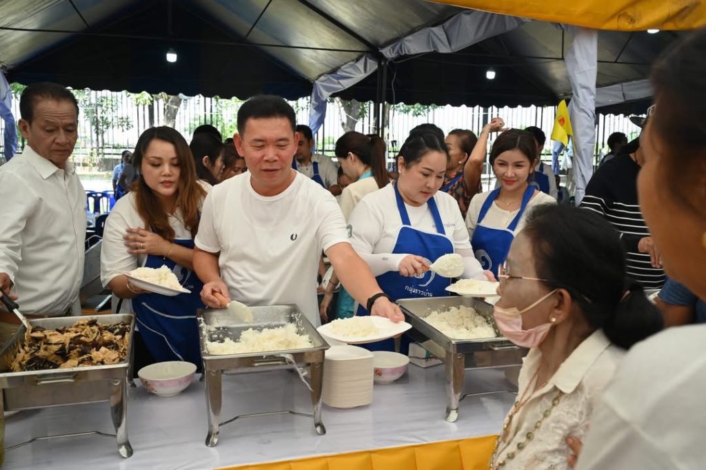 นายก อบจ.นครปฐมพร้อมด้วย สจ.กลุ่มชาวบ้าน ได้จัดเตรียมอาหารเจไว้ต้อนรับประชาชนในจังหวัดนครปฐม