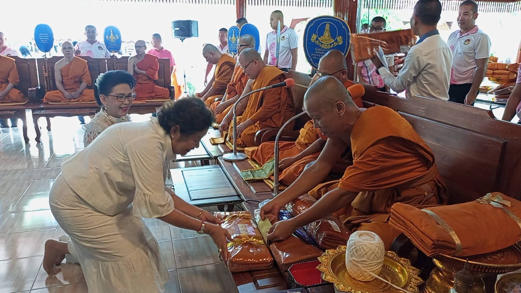 การสมาทานศีล การถวายผ้าพระกฐินแด่พระสงฆ์รูปที่ 2 โดยคุณฤทัยชนก เกตุแก้ว จากนั้นพระสงฆ์ประกอบพิธีอปโลกนกรรม และคณะเจ้าภาพถวายเครื่องบริวารกฐิน พร้อมผ้าไตรจำนวน 13 ไตร แด่พระสงฆ์ 13 รูป